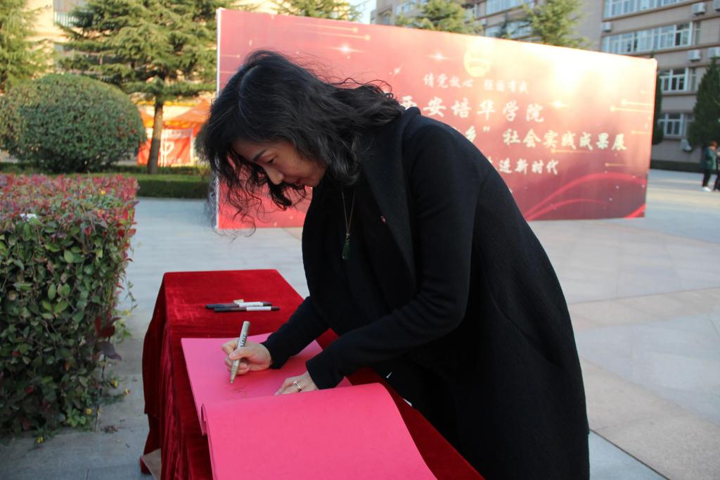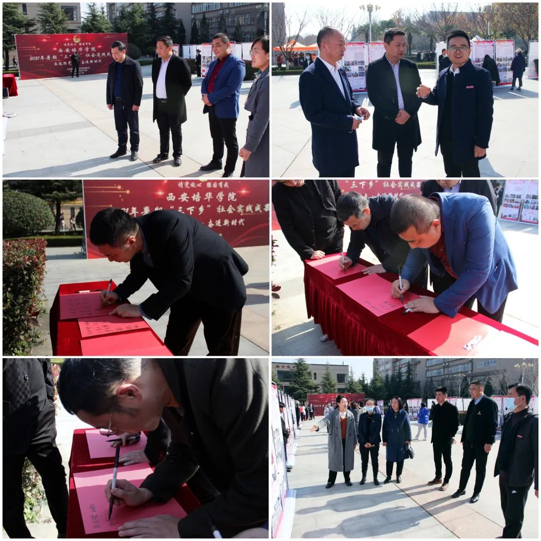 近期,西安培华学院三下乡社会实践成果展也在我校综合楼西广场隆重举办。西安培华学院理事长姜波博士,校长李映方教授,党委书记罗新远教授,副校长、党委副书记姚文静副教授,党委工作部部长陈玲老师,校长办公室主任李健老师,教务管理中心主任铁卫老师,党委宣传部部长柳雨老师,医学院常务副院长扈国栋教授,人文与国际教育学院常务副院长梁蕊副教授,教学副院长赵洁副教授等莅临现场参观三下乡成果展。同时,各二级学院党委(党总支)书记、副书记,各学院辅导员老师和同学们均到场参观,并在留言簿上提笔寄语青年。