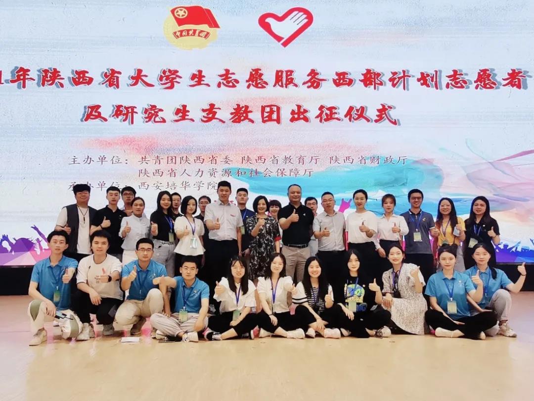 7月23日,由团省委、省教育厅、省财政厅、省人社厅共同主办的2021年陕西省大学生志愿服务西部计划及研究生支教团出征仪式在我校举行。