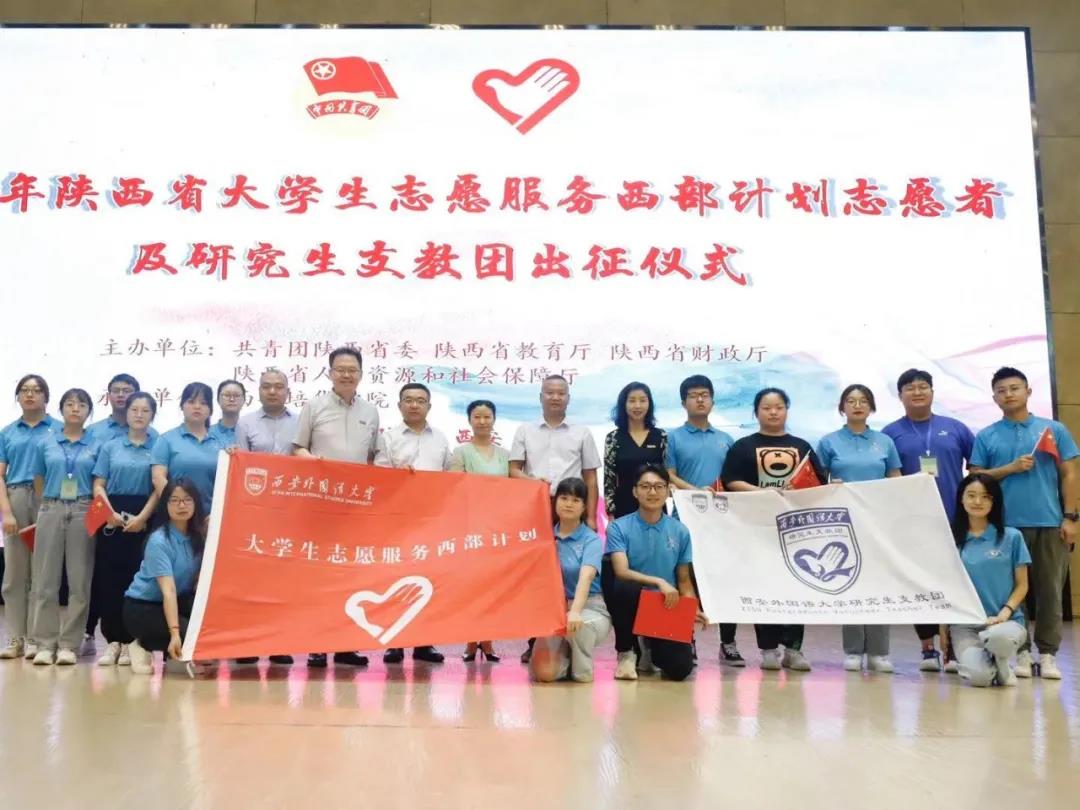 7月23日,由团省委、省教育厅、省财政厅、省人社厅共同主办的2021年陕西省大学生志愿服务西部计划及研究生支教团出征仪式在西安培华学院举行。省教育厅副厅长高岭,共青团陕西省委副书记贾琳,西安培华学院理事长姜波,财政厅行政处四级调研员丁武强,省人社厅事业单位人事管理处副处长魏伟,西安培华学院副校长、党委副书记姚文静,团省委青年社会事业部二级调研员陈晓华和各市、县(区)团委、西部计划项目办,部分高校团委、项目办及新招募西部计划志愿者、研究生支教团成员共计700余人参加仪式。