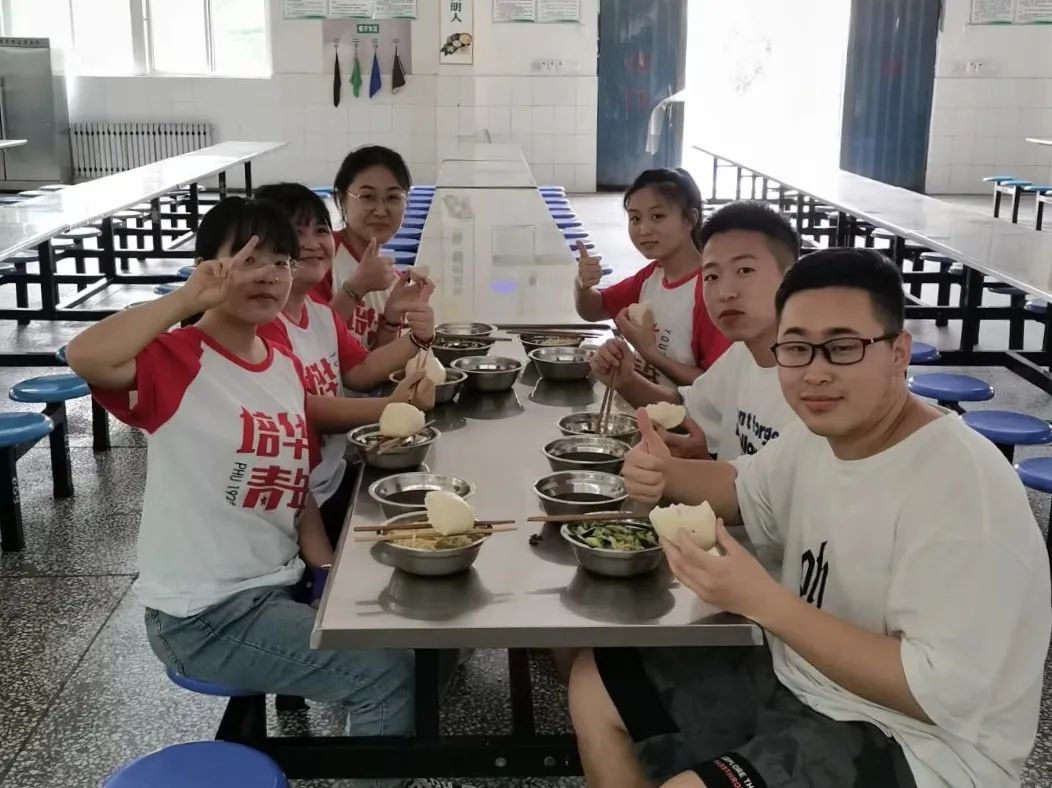 队员们在相遇的第一个下午,在学校食堂吃到了大集体的第一顿午饭,忙碌奔波了一天,再见时,这顿饭显得格外可口。简单的美食,相同的目标,一群带着满腔“下乡实践”热血的培华青年在蒲城县尧山镇的这片蔚蓝的天空下显得格外耀眼!
