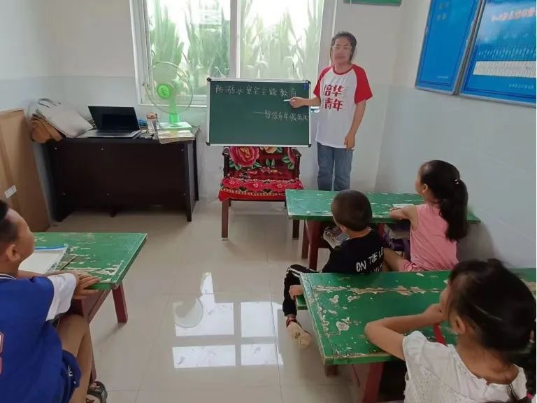 开学第一课,安全第一要!当地水库、池塘较多,而当地孩子所受防溺水安全教育较少,在外玩耍时很容易发生意外。实践队首先开展了暑期防溺水安全教育宣传活动,旨在宣传防溺水安全教育知识,将理论知识与劳动实践相结合,给留守儿童及监护人带去安全知识课堂。