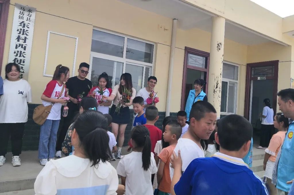 7月10日,开课第一天的上午,在东张村举办了本次志愿支教活动的“开课仪式”。“小朋友们你们好呀,我们是西安培华学院的……”初见孩子们紧张害羞的神情、双手无处安放的局促,都随着孩子们拿着他们自制的花束欢迎志愿者的到来,在一片欢声笑语中悄然不见。这是智信青年志愿服务队与孩子们故事的开始。