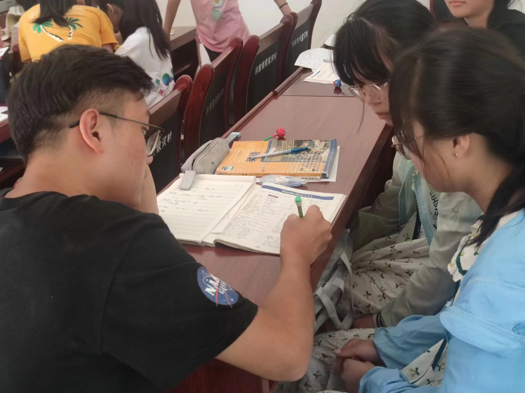 每个成员会根据学生的不同学习情况来进行作业辅导,虽有炎炎烈日,但却不挡爱的热情。队员们都已经适应了“老师”这一身份,以积极饱满的态度认真工作。老师们积极备课,学生有不懂的地方,会给孩子们耐心讲解。每个队员都在尽自己最大努力希望多传授知识给每一位同学。