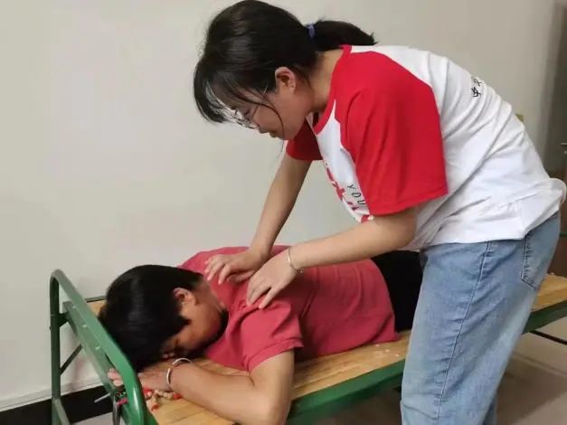 医心护梦社会实践队于7月17日在池阳村党群服务中心开展主题为“义诊惠民生,医疗送健康”的定点义诊活动,旨在缓解村民身心的不适感,向他们普及相关基础健康知识。活动内容包括基础问诊、测量血压、按摩、针灸、艾灸等,不少村民都表示队员们的手法很好,经过按摩或艾灸之后全身都轻松很多,大大缓解了疲惫感,并对队员们表示感谢和鼓励,同时也表达了殷切的希望