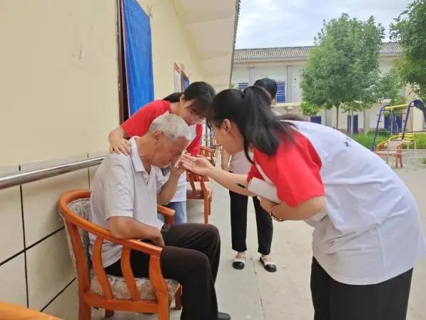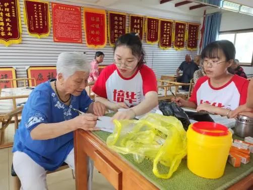 医心护梦社会实践队于7月19日走进尧山养老院开展暑期“三下乡”社会实践活动。队员们为老人们打扫卫生、测量血压、表演节目,并和他们耐心的聊天,给他们单调的生活增添了欢笑与温暖。队员们还慰问了院内的老党员和百岁老人,聆听他们的入党初心以及过往经历。通过此次实践活动,弘扬了“尊老、敬老、爱老、助老”的传统美德,让老人们充分感受到社会大家庭的关爱和温暖,同时也展现出了新时代培华青年蓬勃向上的精神风貌。