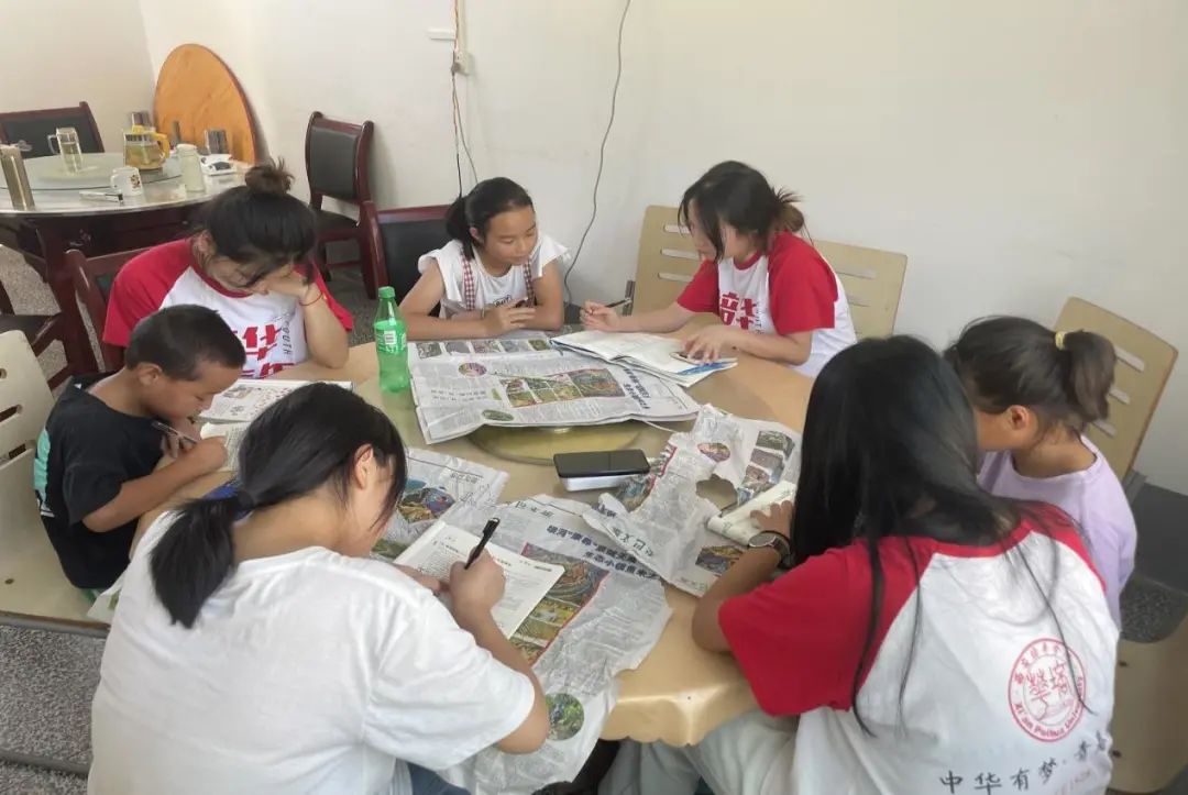 闲暇之余,队员们在村委会辅导小朋友们的暑假作业,帮助他们巩固知识,解答疑难问题。