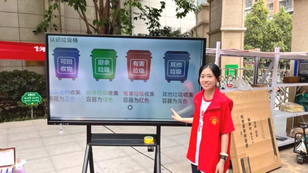 垃圾科学分类:通过“垃圾桶颜色密码”(蓝色可回收、绿色厨余、红色有害、灰色其他)和趣味问答,让居民秒懂香蕉皮、废电池、口红该去哪“报到”;更用“可回收垃圾爱吃啥”的拟人化比喻,把纸箱、塑料瓶等常见物品的分类讲得生动有趣。