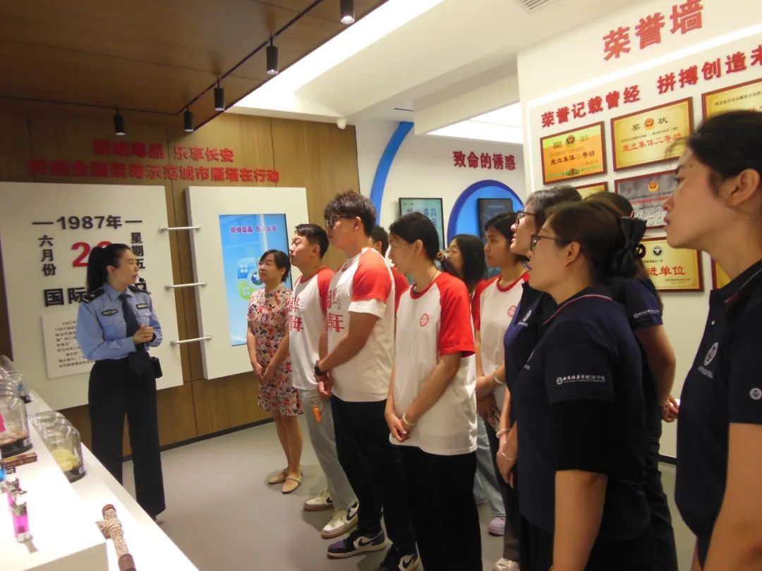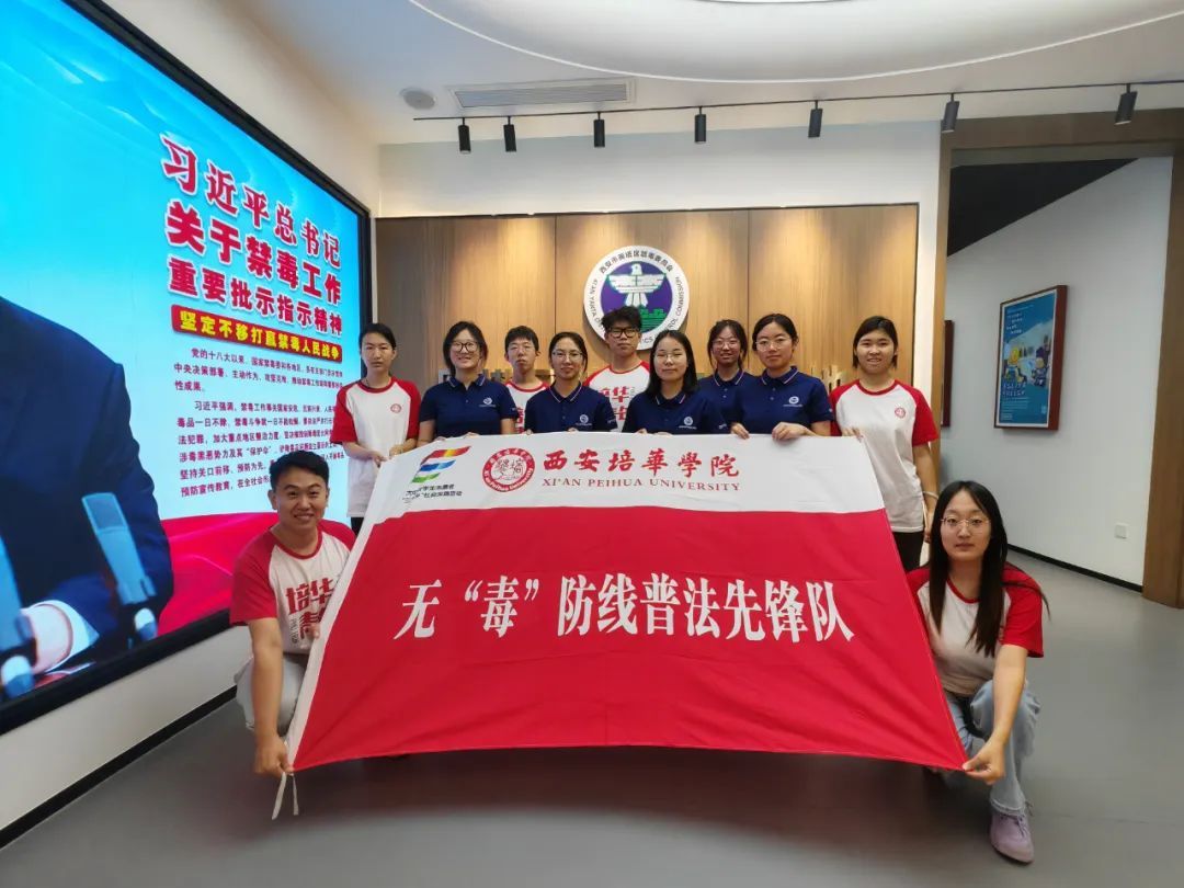 习近平总书记曾说:“禁绝毒品,功在当代,利在千秋 。”毒品问题关系到国家和民族的兴衰存亡,禁毒工作是一项长期而艰巨的任务,需要全社会的共同努力。为增强大学生禁毒意识、普及禁毒知识,7月7日,西安培华学院无“毒”防线普法先锋队走进西安市雁塔区防毒宣传中心,开展“以青春之名筑牢无毒防线”学习活动。