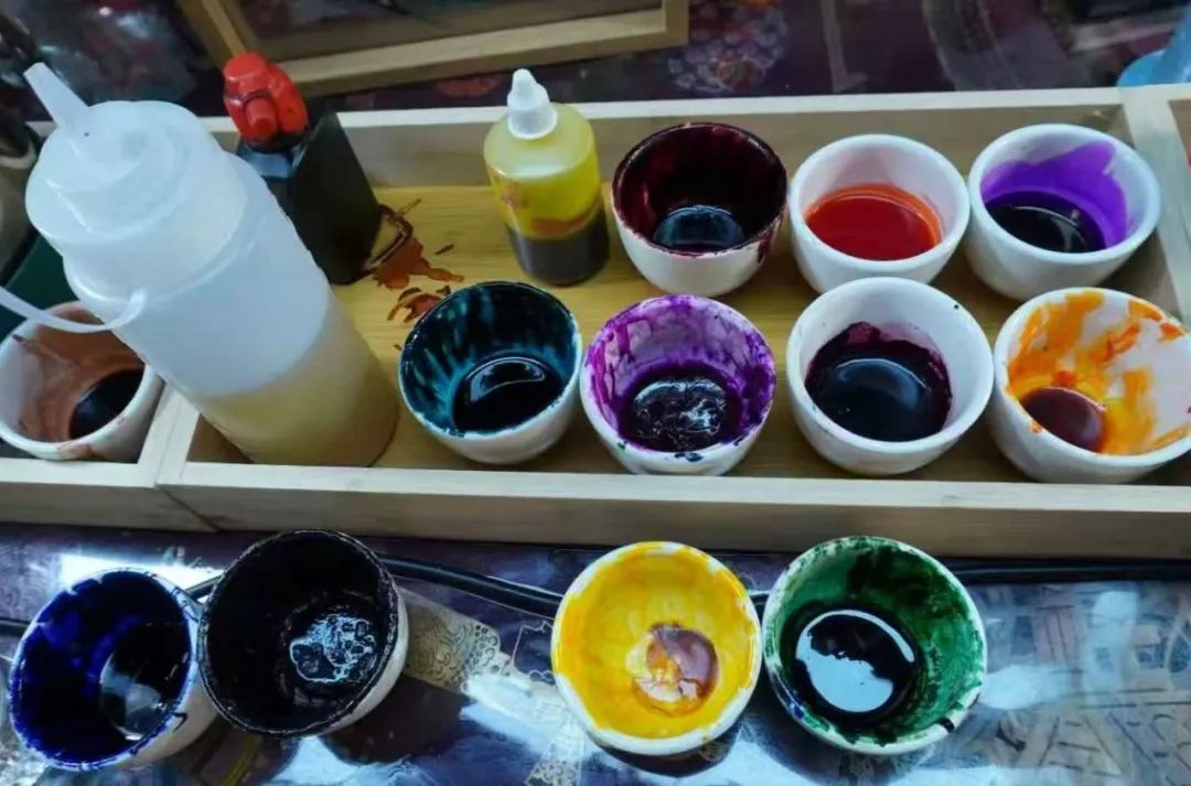 团队成员共赴西安钟楼汪老师皮影工作室,开启技艺实践的深度学习。工作室不大,却摆满了待上色的皮影坯子与数十种矿物颜料,每一种色彩都承载着地域的自然密码。汪老师示范时,毛笔在方寸皮面上轻扫,先以淡墨勾线定调,再用“平涂”技法铺底色,最后以“晕染”凸显衣袂的褶皱层次。