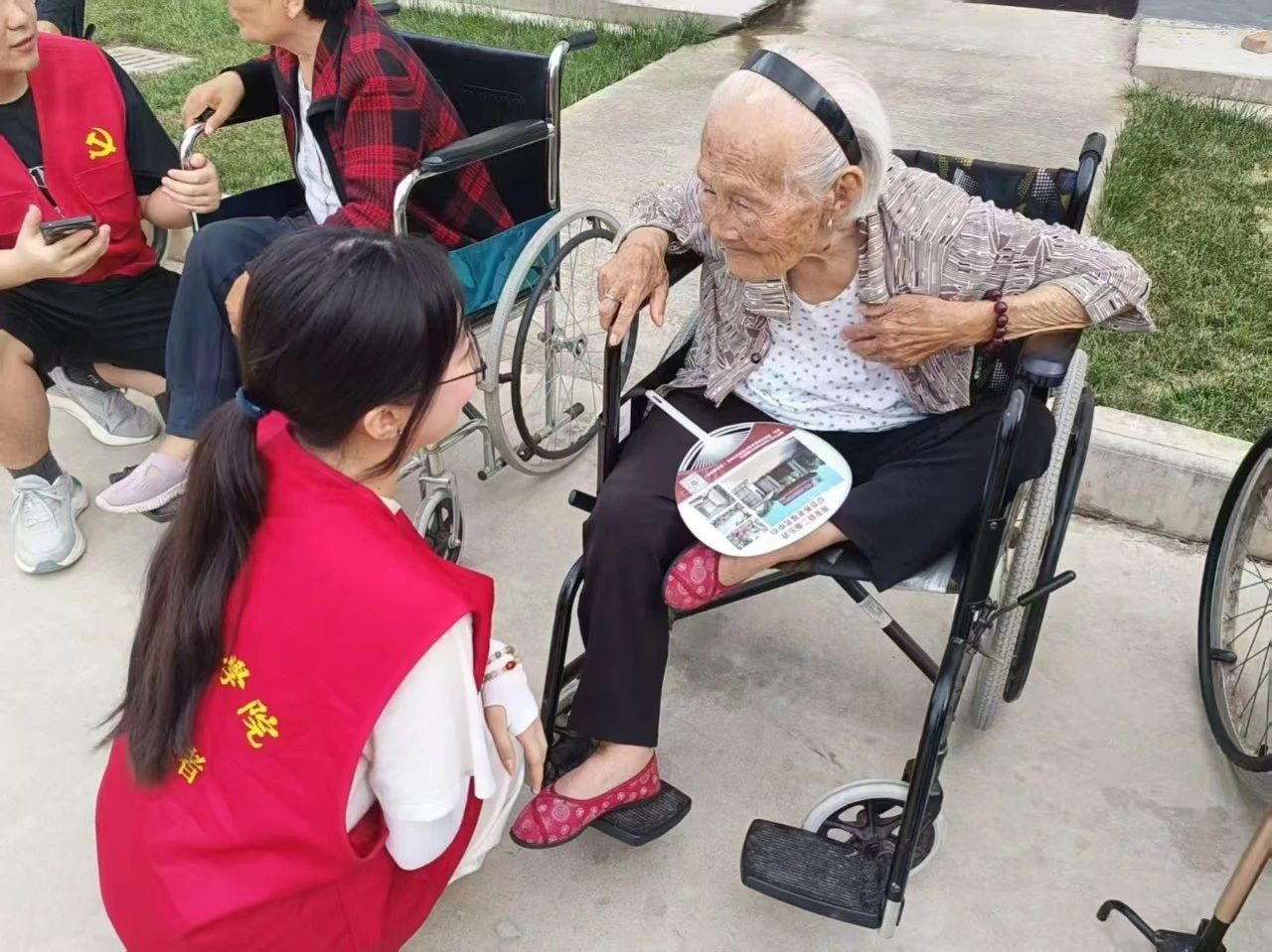 “爷爷,您年轻时候是做什么工作的呀?”“奶奶,这天气变化快,您可得注意添衣。”墙绘间隙,志愿者们主动围在老人身边,拉起了家常。老人们打开话匣子,分享着过去的生活经历、人生感悟,志愿者们静静倾听,时而点头回应,时而轻声询问,用耐心与尊重驱散老人们的孤独感。85岁的张奶奶握住志愿者的手说:“孩子们一来,院里就热闹了,有人说话就是好。”老人们经常在树荫下观看志愿者们忙碌的身影,老人们不知不觉已经静静围在画前,仔细观看轻轻抚摸墙面,脸上挂着欣慰的笑容。