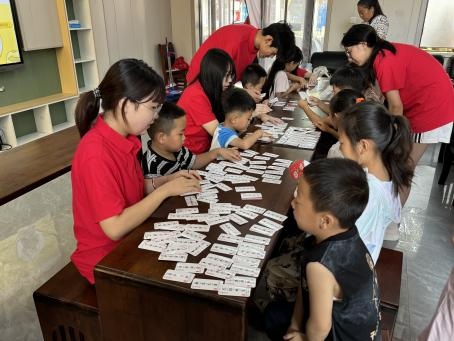 推广普通话,共筑沟通桥。队员们通过清晰示范与耐心指导,帮助孩子们掌握标准发音与规范用语。重点针对当地方言易误读的字词进行辨析,引导孩子们体会普通话作为国家通用语言在信息传递、情感联结中的纽带作用,为孩子们未来更广阔的交流奠定清晰、自信的表达基础。