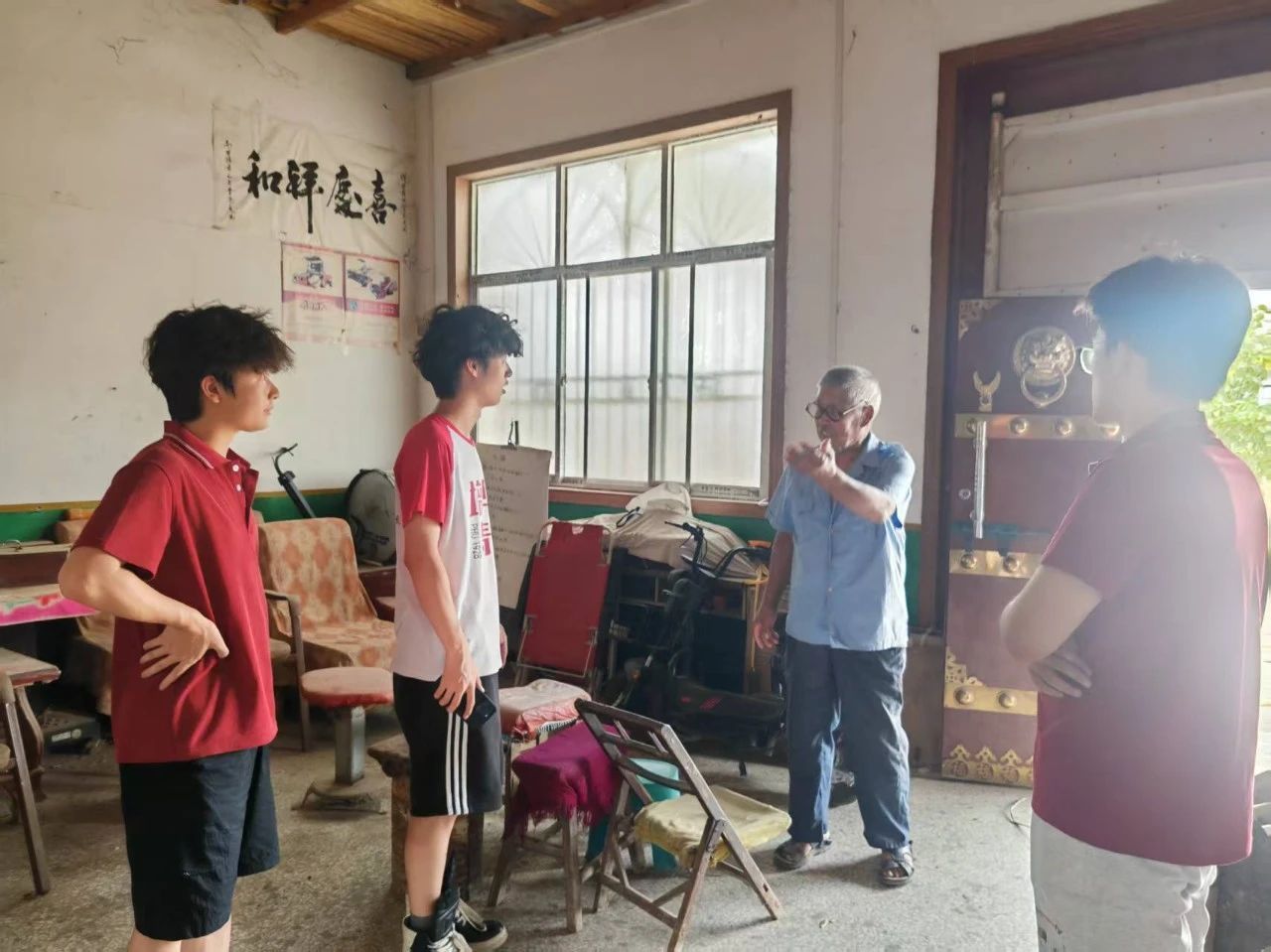 精雕细琢皆成韵,木艺传承墨溢香。7月5日,西安培华学院传媒与设计学院“实践兴乡忆青春”社会实践队踏上暑期“三下乡”的征程,由指导老师丁亚莉老师带领13名学生来到了渭南市临渭区李十三村。7月12日,团队在文化宣传展陈设计时有幸遇见一位能让旧衣柜重获新生的“魔术师”,把乡愁刻进木纹理的“诗人”,他就是用一辈子证明“慢工出细活”的80岁老匠人——李爷爷。因此,一场关于传统手艺传承与青春力量的碰撞就此在一凿一斧间绽放开花,为这个夏天增添了一抹独特而深刻的色彩。
