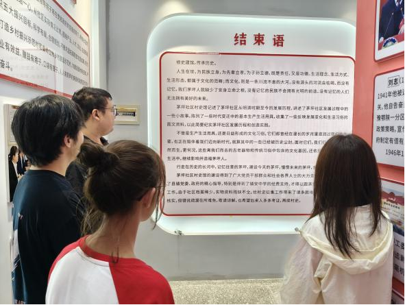 薪火承志踏新程,红区焕彩谱新篇。西安培华学院“薪火相传”红色文化实践队走进茅坪村史馆,在历史回响中感悟乡村振兴的时代脉搏。村史馆内,斑驳的农具、泛黄的老照片见证着这个曾经"靠天吃饭"的贫困镇,在党的精准扶贫政策指引下,通过发展特色畜牧业、乡村旅游等产业,实现从“泥巴路”到“水泥路”蜕变。师生们参观完不禁感叹:正是党的坚强领导,让茅坪这片红色土地焕发出蓬勃生机,书写了脱贫攻坚与乡村振兴的有效衔接的生动篇章。