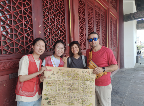 “丝路语使”团队成员把与外国游客交流的动人瞬间,精心整理成系列公众号文章和短视频。意大利一对情侣惊叹于钟楼建筑,志愿者便为其讲解“晨钟暮鼓”和榫卯结构;英格兰游客重游西安,志愿者与他共忆往昔,讲述钟鼓楼历史;西班牙姑娘玛丽亚和索菲亚被文化使者热情吸引,获赠双语地图,还计划着体验油泼面和汉服。这些点滴故事,展现出不同文化的交流融合,温暖人心,也彰显了“丝路语使”在文化交流中的桥梁作用。