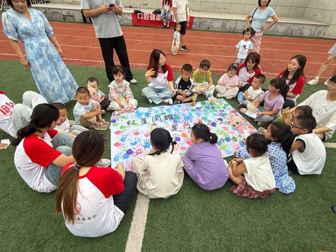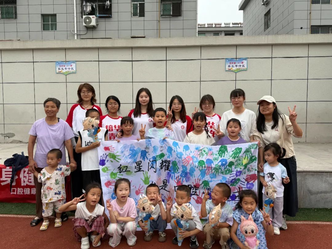 首场口腔宣讲正式开启,我们走进当地操场,面向小朋友群体,宣讲聚焦儿童口腔问题:换牙期的注意事项、龋齿的早期识别、如何远离不良口腔习惯。成员们通过趣味动画、情景短剧,把严肃的医学知识变得生动有趣。“原来刷牙要刷够三分钟!” 听完讲解,小朋友们纷纷拿起牙刷,跟着成员学习正确刷牙动作,一张张认真的脸庞,让我们深知守护口腔健康,就是守护未来的灿烂笑容。操场之上,另一番热闹景象。团队以 “护牙歌” 为媒,带领孩子们开启趣味口腔科普。“小牙卫士志不改 笑如红星耀四海 …” 欢快的旋律中,孩子们边唱边模仿正确刷牙动作,稚嫩的歌声与灿烂的笑容交织,把口腔健康知识深植心间。这场 “唱出来” 的科普,让严肃的健康话题变得童趣满满,也让口腔守护的种子在童年萌芽。