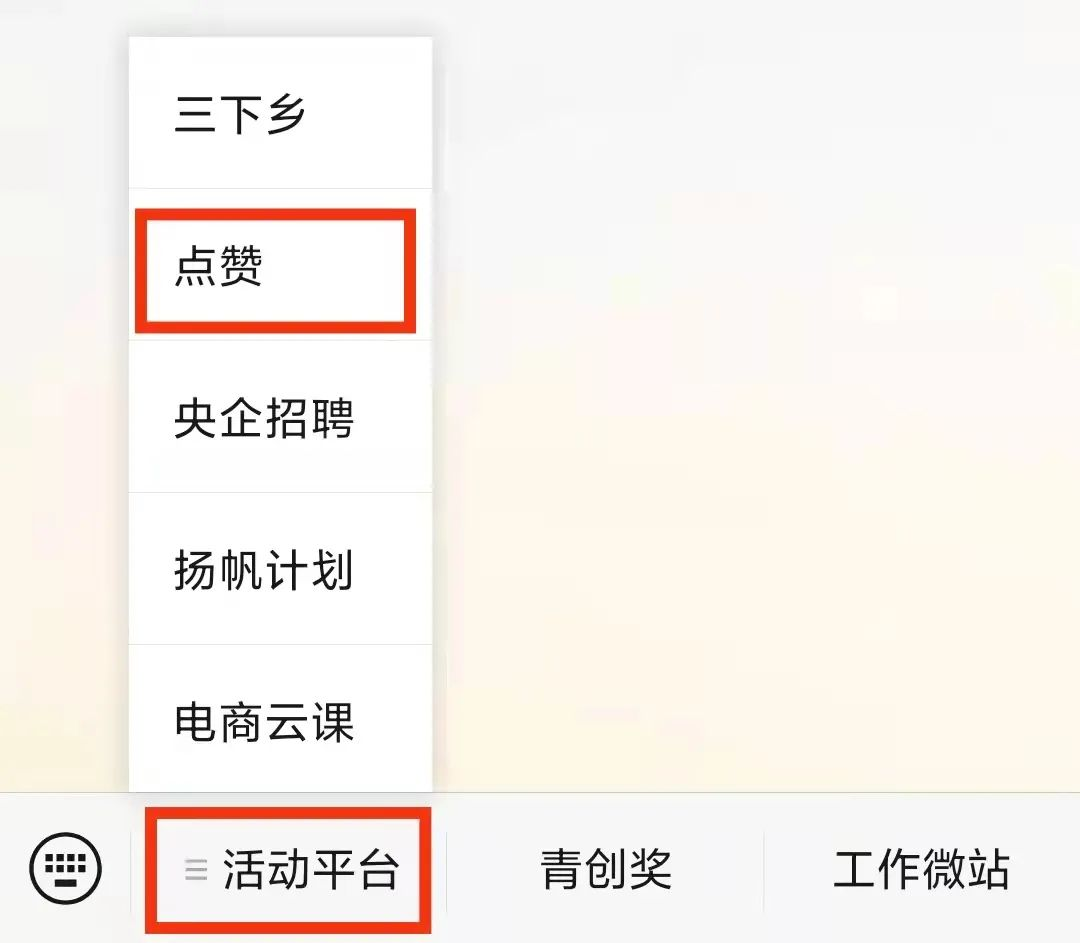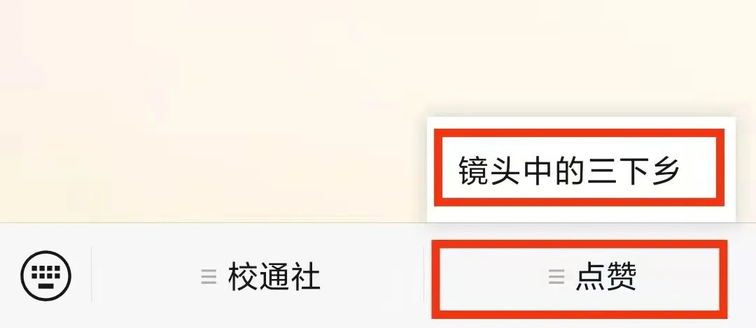 2.点击菜单栏--点赞--镜头中的三下乡/返家乡”即可参与点赞(每人每天在每个公众号可点击投票3次、每人在每个公众号上只能为1个作品点赞1次、两个公众号上的点赞数都计入总点赞数)