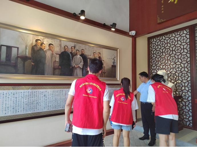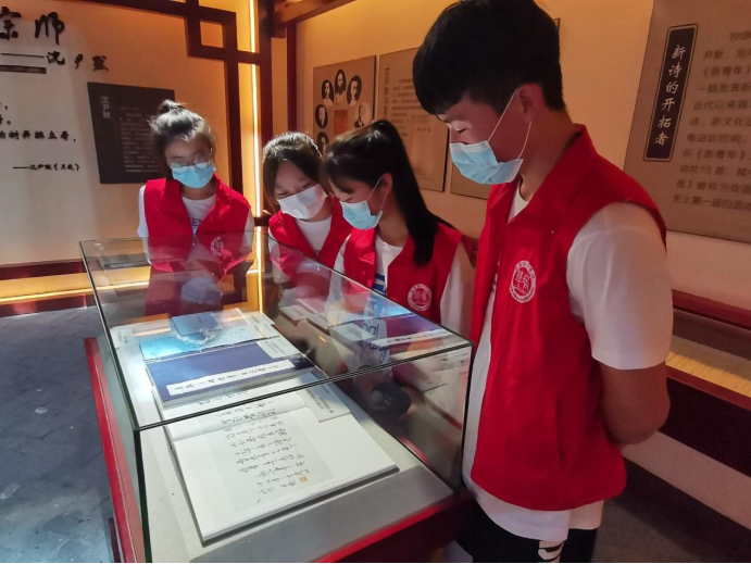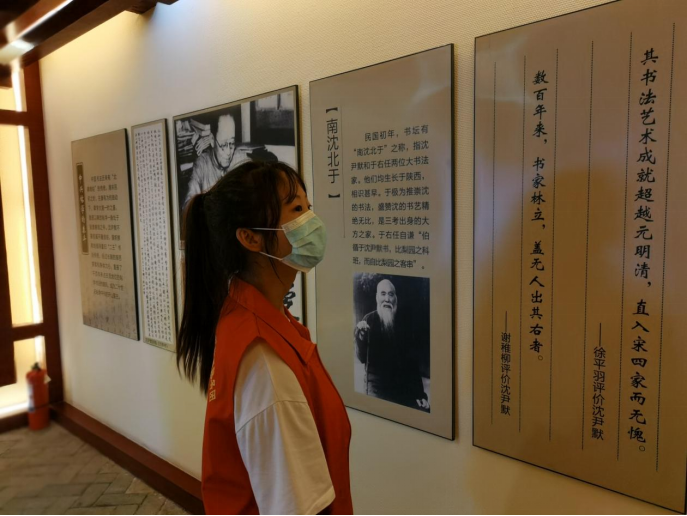 本次下乡活动的最后一站是当地的三沈纪念馆,星光逐梦实践队的队员们一起追寻大师的成长足迹,缅怀为民族文化事业做出杰出贡献的沈士远、沈尹默、沈兼士三位大师。在汉阴志愿者联合会赵会长的带领下,实践队员们走进具有江南庭院风格的阁楼式纪念馆,被院内的青砖、挑檐、天井、石雕鱼缸所吸引,这里既古朴、庄重,又典雅、幽静、独具汉阴钟灵毓秀的人文气息。这次研学参观详细了解三位大师生平,在纪念馆内彳亍,我们仿佛走过了他们的人生。对他们多了一份敬仰,对三沈精神、沈氏家训有了更深刻的认识和领悟,未来我们一定要发扬三沈精神,争做时代新青年。