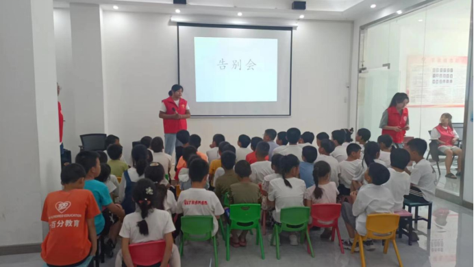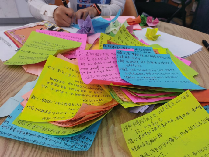 告别会上,每位志愿者老师们都一一向同学表示了美好的祝愿与离别的不舍。一同观看离别视频,回忆十天的美好瞬间,志愿者老师用心为每个同学都送上了自己准备的信,老师的祝福与期望都寄托在这份特殊礼物中。