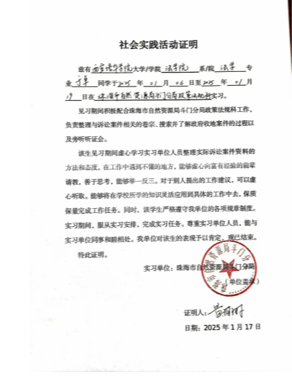 实践单位:珠海市自然资源局斗门分局政策法规科