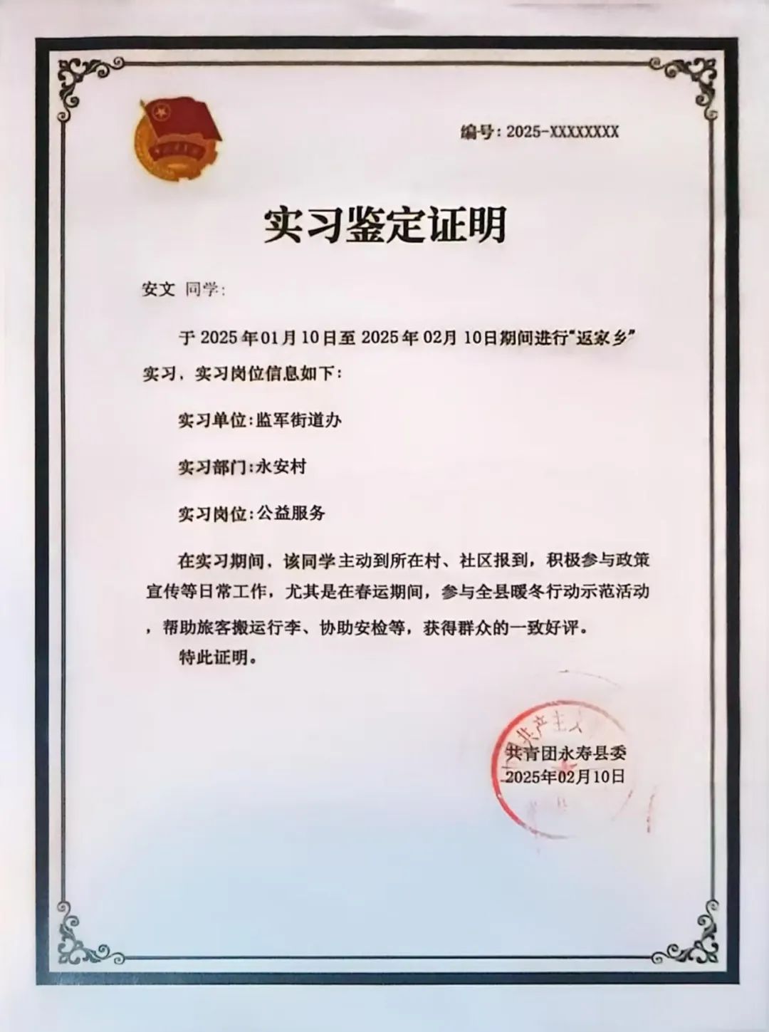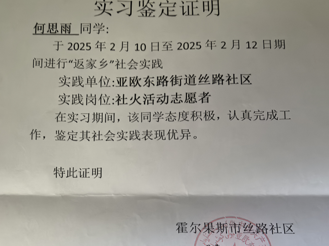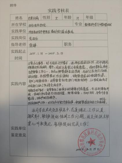 实践岗位:村委会日常工作,整理档案资料,汇总表格等村务管理