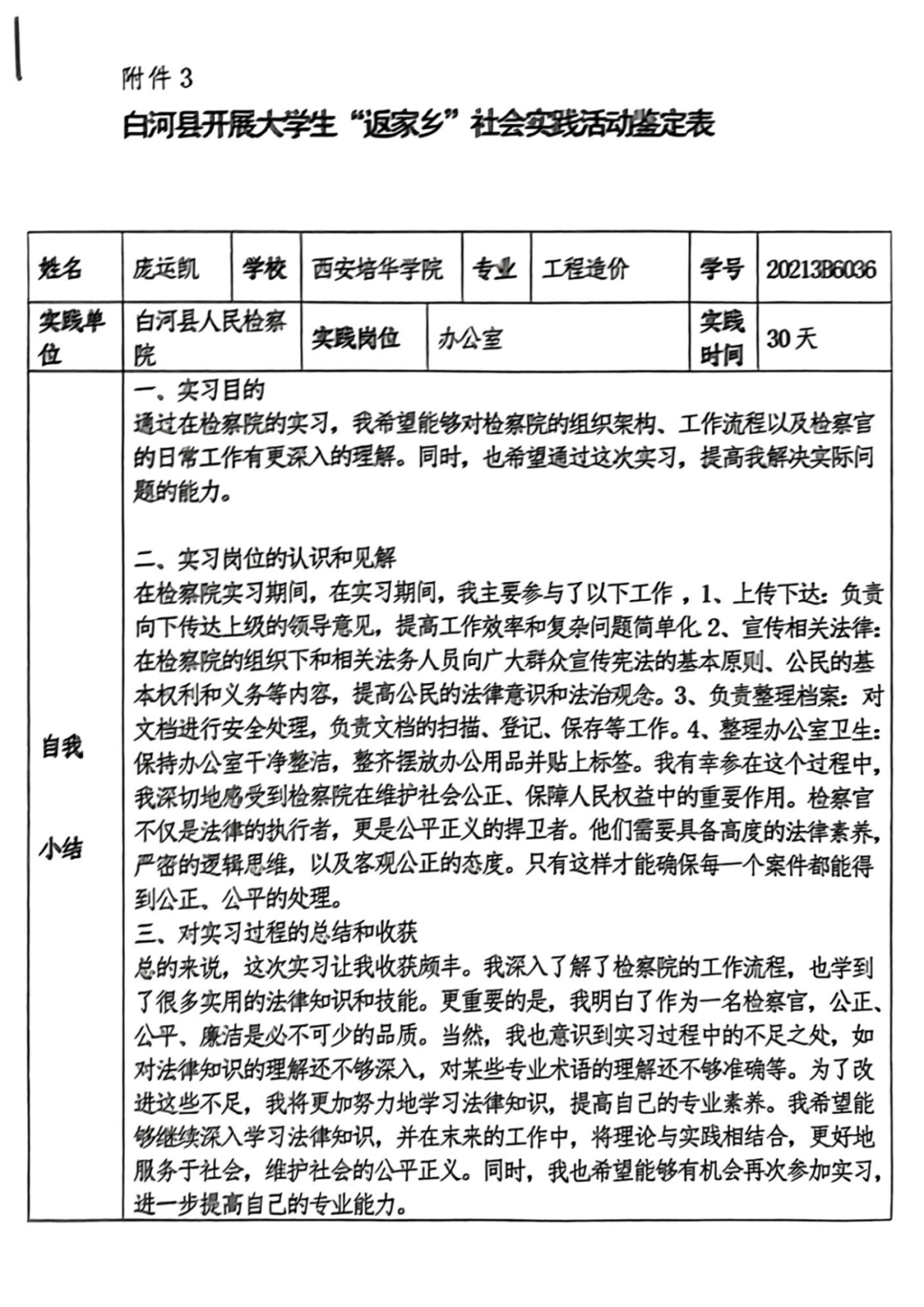 实践岗位:白河县人民检察院办公室见习生