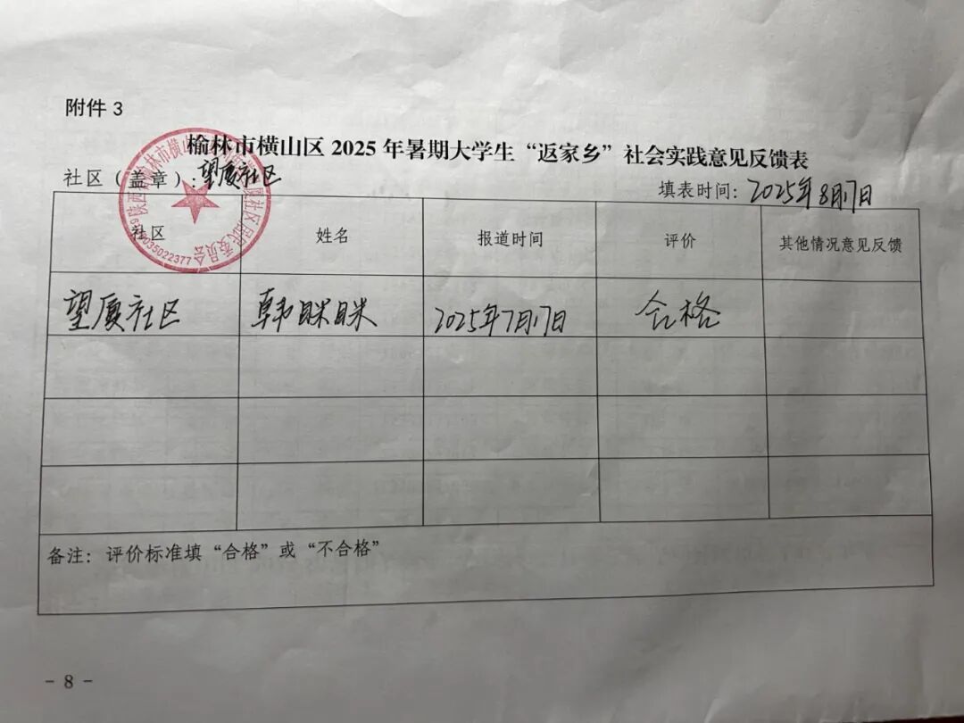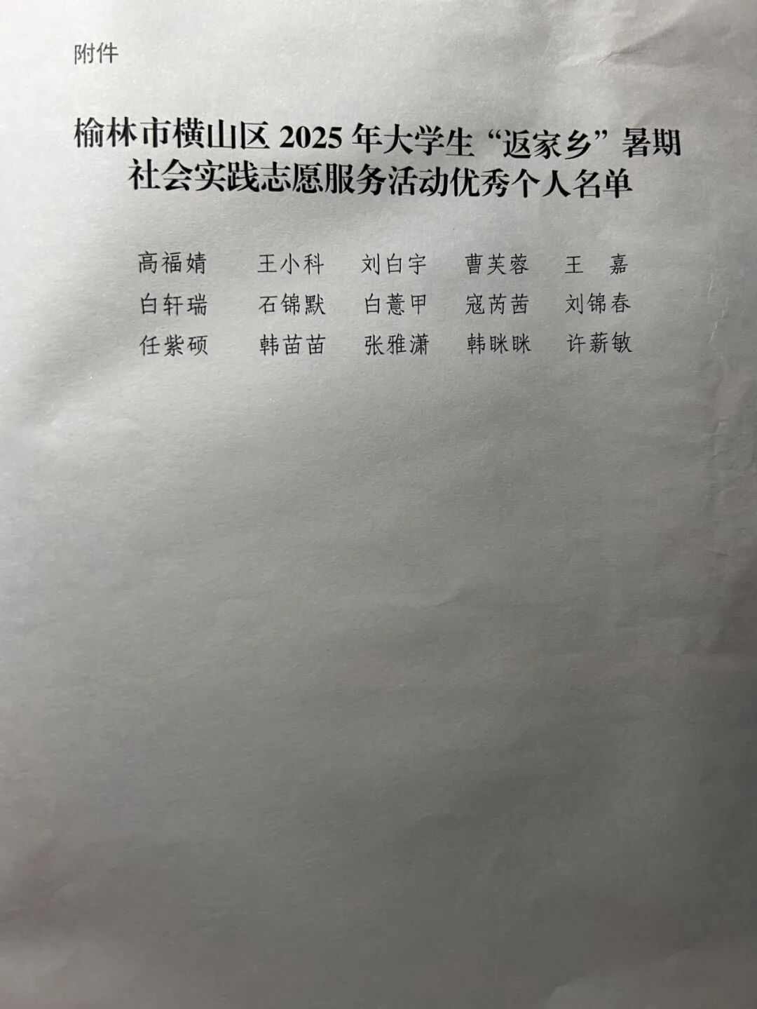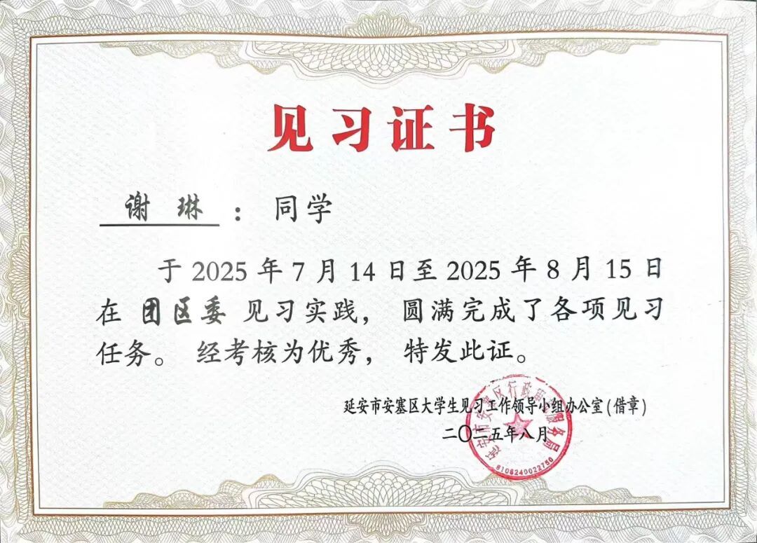见习内容:社会实践期间,参与社区便民服务,为居民发放食用盐并科普健康用盐知识;担任横山区篮球比赛志愿者,负责场地引导、秩序维护及物资协调;作为横山区陕北陕南文化交流志愿组织成员,协助布置活动场地、引导嘉宾互动,促进地域文化沟通;参加“返家乡”社会实践培训,提升服务技能与责任意识,结合培训内容优化志愿服务流程,增强基层服务实效。此外,参与社区老年人和儿童关怀活动,协助开展健康讲座、心理疏导,并协助整理居民需求反馈,为社区服务改进提供参考。
