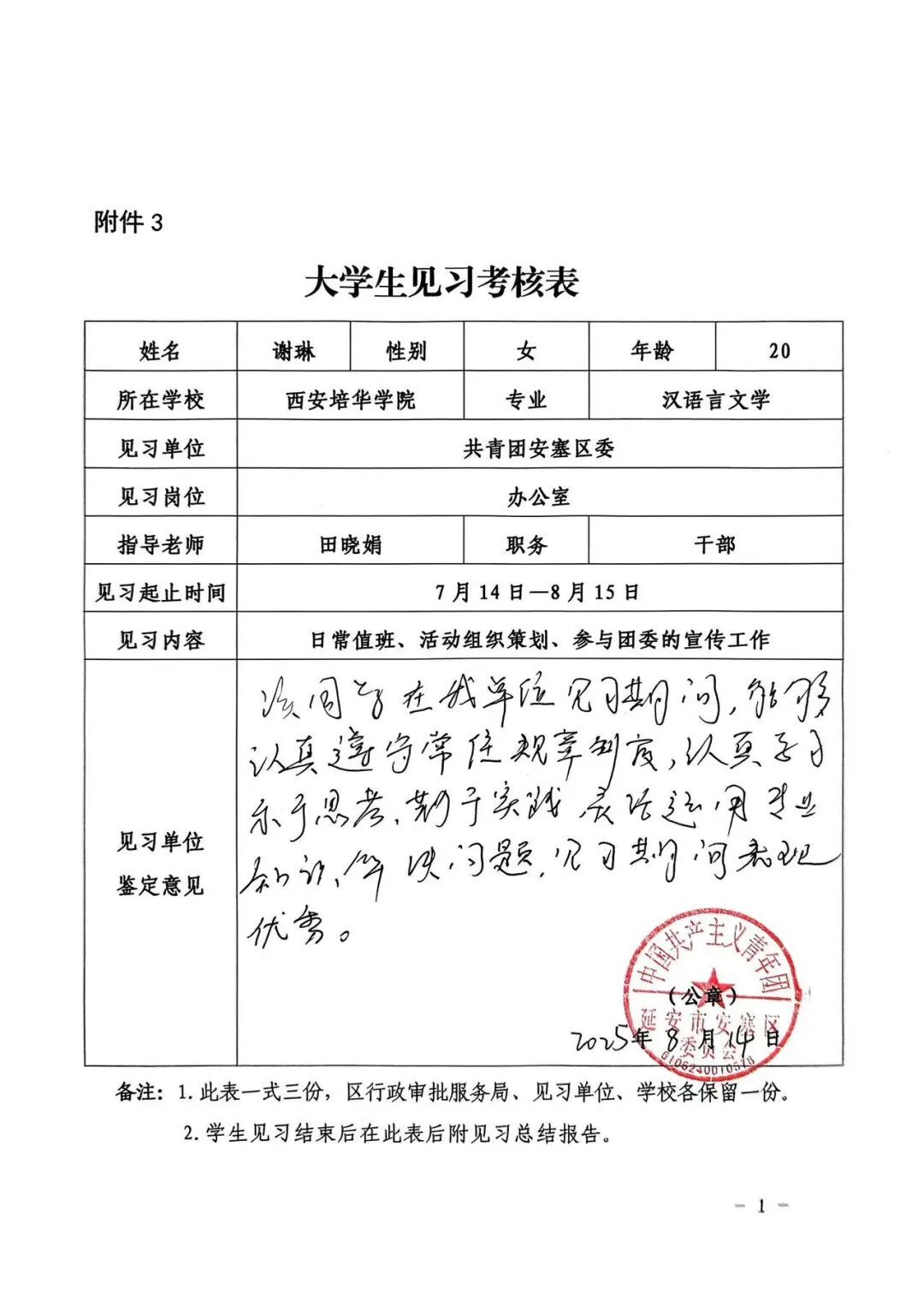 心得收获:在团委见习的这段时光,于我而言是成长与蜕变的宝贵经历。在这里,我参与了众多活动,从青年集市到爱鸟护鸟实践,每一场活动都是一次挑战与锻炼。我学会了如何精心策划活动流程,怎样高效协调各方资源,也懂得了在突发状况中灵活应变。在与团队成员的合作中,我深刻体会到团结协作的力量,大家为了共同目标齐心协力,这种氛围让我深受感染。同时,通过团委公众号的编写排版,我的文字表达和信息整合能力得到提升。更重要的是,我明白了服务青年的意义,每一次为青年解决问题、组织有益活动,都让我收获满满的成就感。这段见习经历,将激励我在未来继续前行。