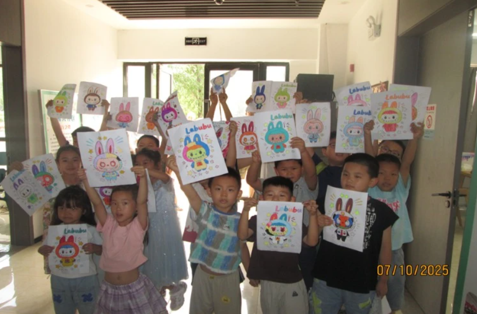 课堂上生动讲解播撒知识种子,手工课巧折趣剪绽放创意之花。艺术创想课堂将社区活动室变身“创意工坊”,队员们以“Labubu”卡通绘画为媒介,引导孩子们观察造型特征、理解色彩搭配。从生涩握笔到独立完成充满童趣的作品,孩子们在折纸、绘画中尽情释放想象力,,孩子们在绘画中不仅提升了艺术素养,更培养了专注力和创造力,让艺术的种子在心中生根发芽。