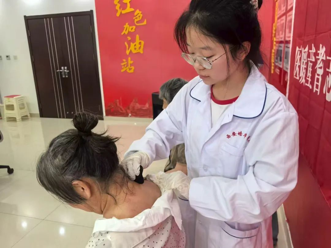 南丁格尔志愿者服务二队以“筑梦榆林,医药乡行”为主题,在陕西省榆林市绥德县开展了为期15天的志愿服务。实践中,队员们不仅为居民测血压和血糖,进行中医理疗(包括艾灸、耳穴、推拿等),还通过科普讲座普及健康知识,着力提升居民健康意识与急救能力,让课堂理论在乡村一线落地生根。除此之外,还带领村民学习八段锦和拍八虚,并且走访了老党员,给残疾人送温暖,学习当地红色文化和民风民俗等。此次“三下乡”活动累计服务1000余人,获镇团委、村委会及村民广泛赞誉,收获实践证明9份、感谢信10封;团队投稿超500篇,发表300余篇,用青春行动为乡村振兴添彩。
