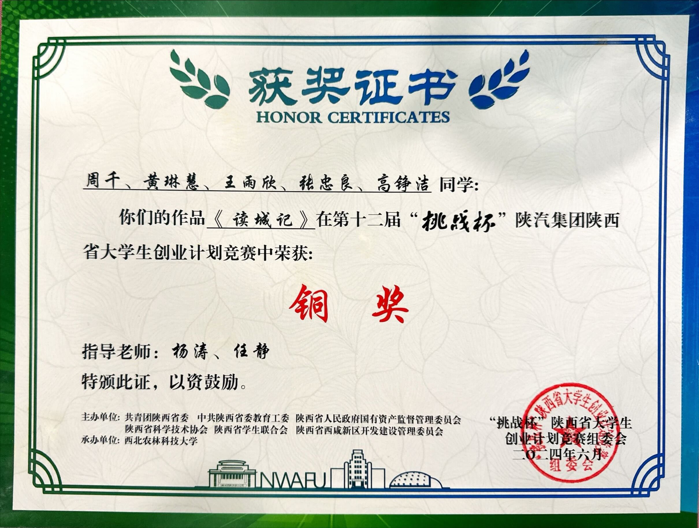 第十二届“挑战杯”陕汽集团陕西省大学生创业计划竞赛自启动以来,我校高度重视,校团委联合教务管理中心积极动员,认真组织“挑战杯”(校赛)项目打磨训练营、赛前指导培训会,学生参赛热情高涨,营造了良好的科创氛围。最终,我校4项作品闯入终审决赛,荣获4项铜奖。