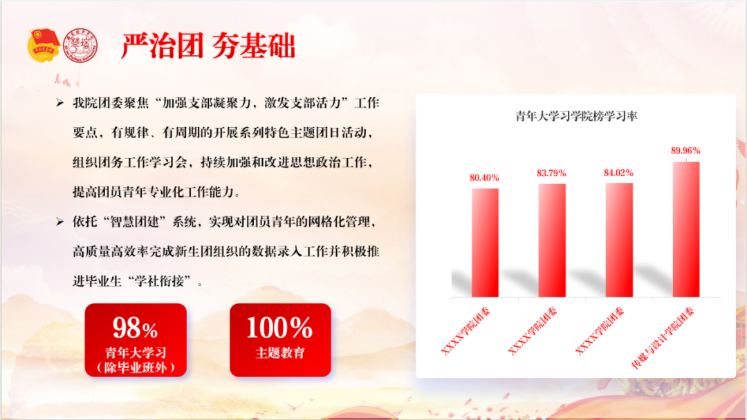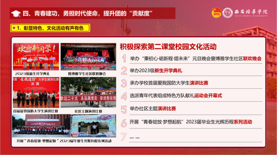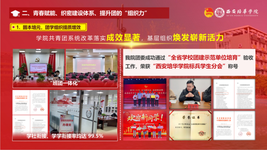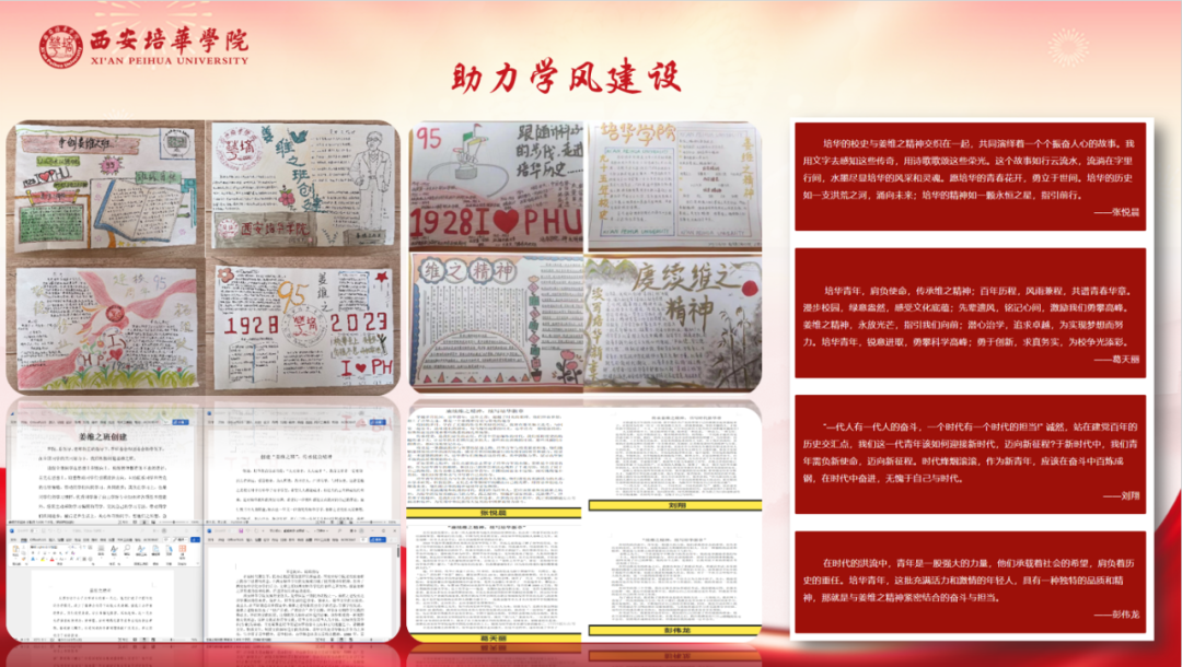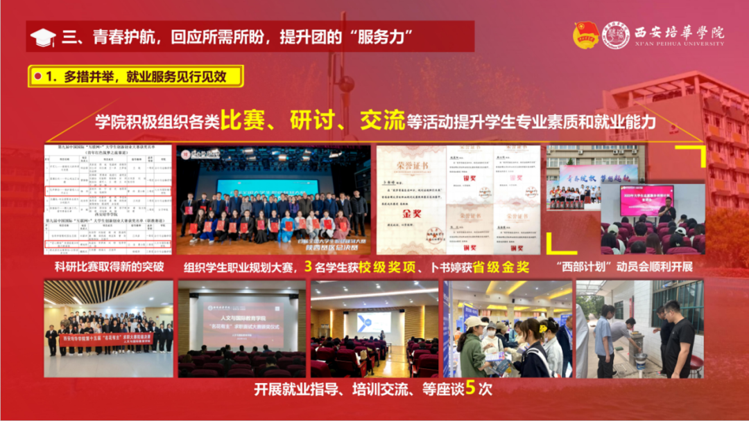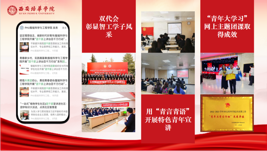 西安培华学院2023-2024学年基层团组织“向党述职 向青年报告”众评众议述职汇报大会,以“述”亮绩,以“评”促建,在生动的交流中为各学院团委之间互学互鉴、互促互融提供了有效的平台。接下来,我校共青团将继续以习近平新时代中国特色社会主义思想为指导,深入贯彻落实习近平总书记关于青年工作的重要思想,聚焦为党育人主责主业,在加强思想政治引领、服务青年就业和创新创业、深化团学组织改革、全面推进从严治团等方面持续发力,推动我校共青团工作高质量发展,以优异成绩献礼新中国成立75周年!