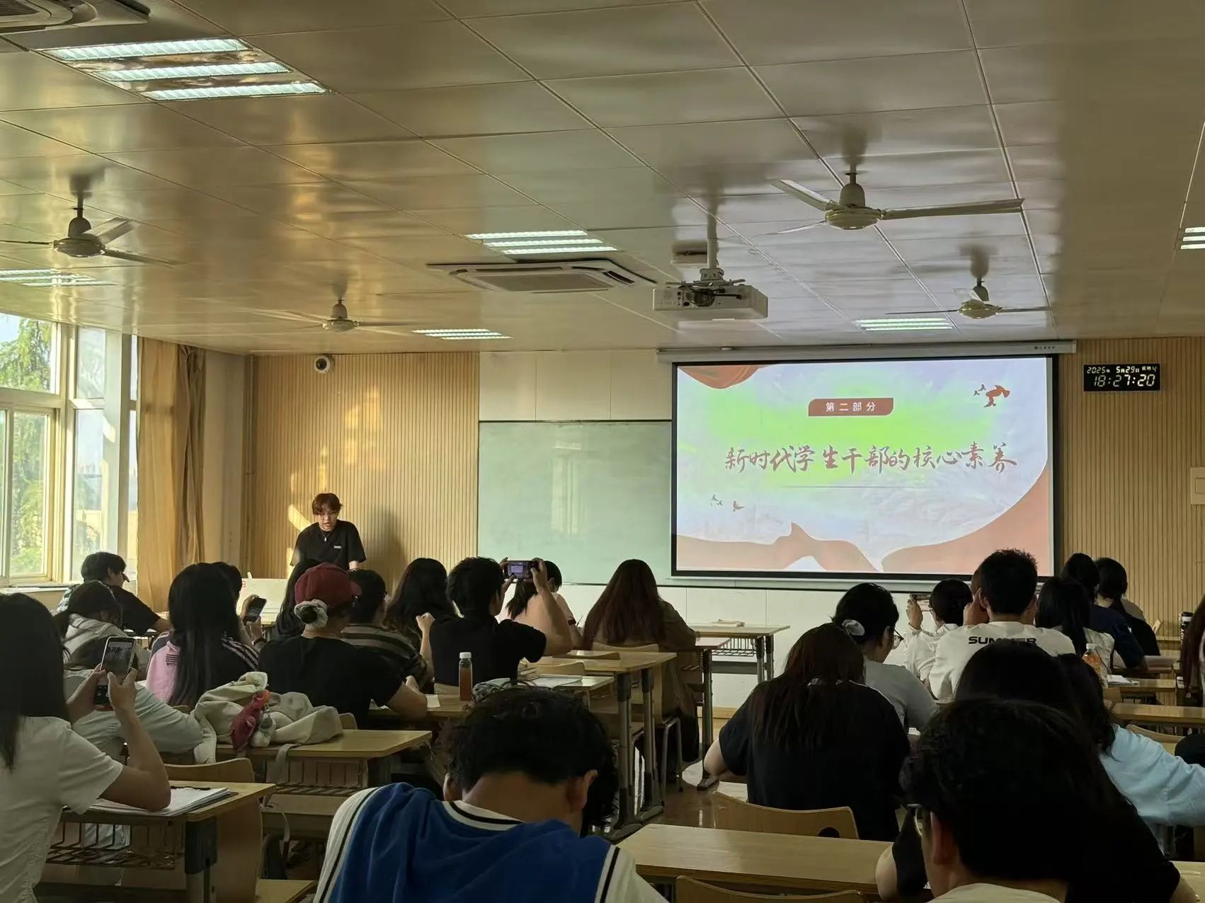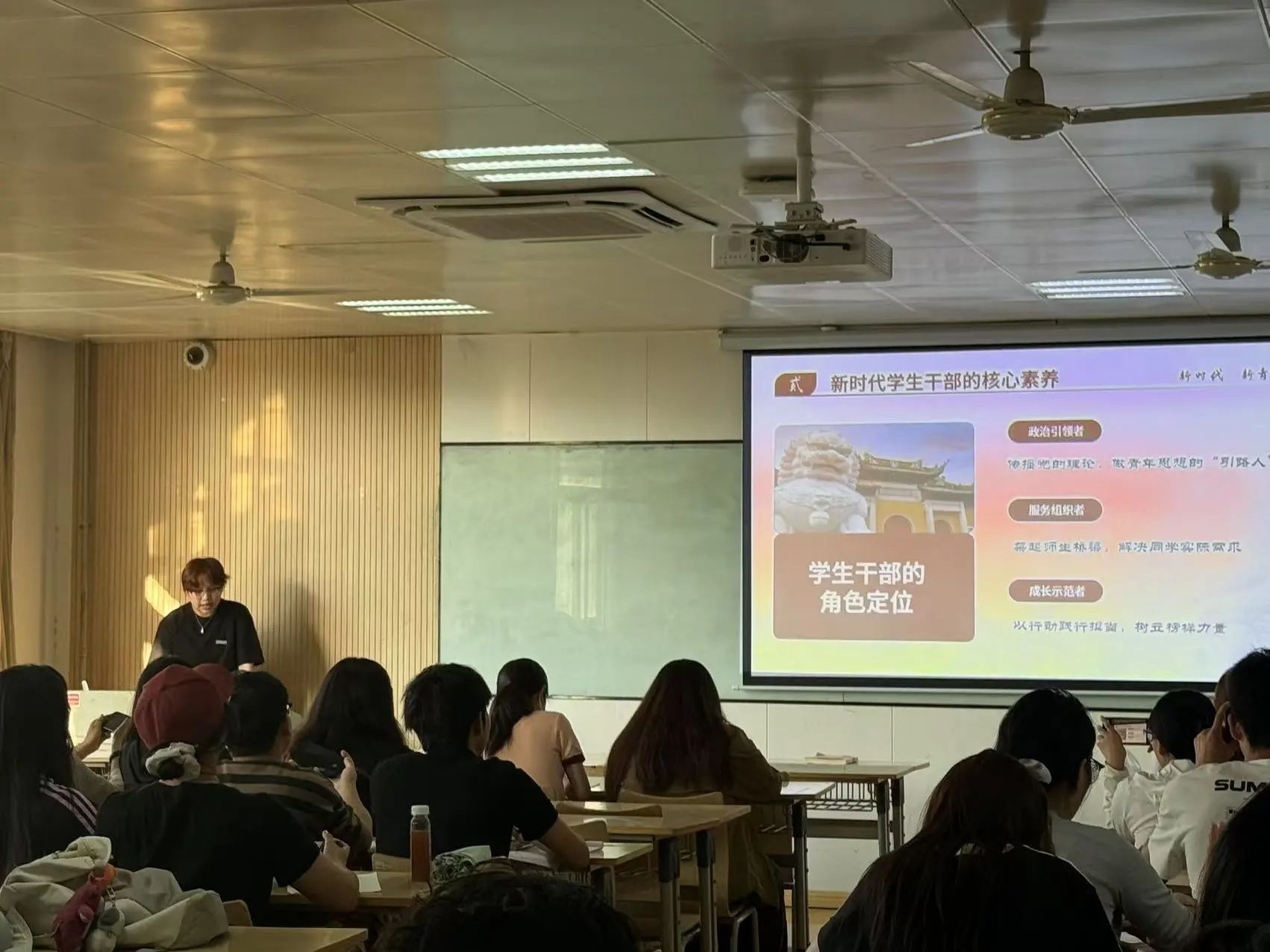 为了进一步加强学生干部队伍建设,全面提升学生会成员的综合素质与工作能力,以充分发挥学生干部在自我管理、自我服务中的模范带头作用为主题邀请了西安培华学院学生主席团成员敬若雪为全体骨干培训学员进行了思想引领主题分享。
