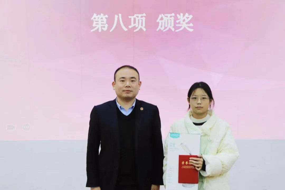 会计与金融学院党委书记兼行政副院长刘斌为一等奖选手王欣月颁奖。