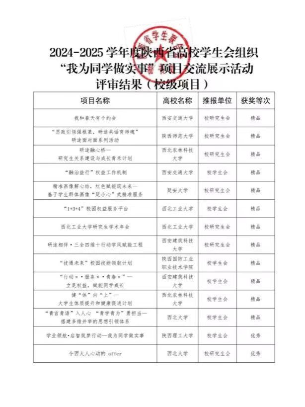 近日,共青团陕西省委、陕西省学生联合会在全省范围内开展陕西省高校学生会组织“我为同学做实事”项目交流展示活动,