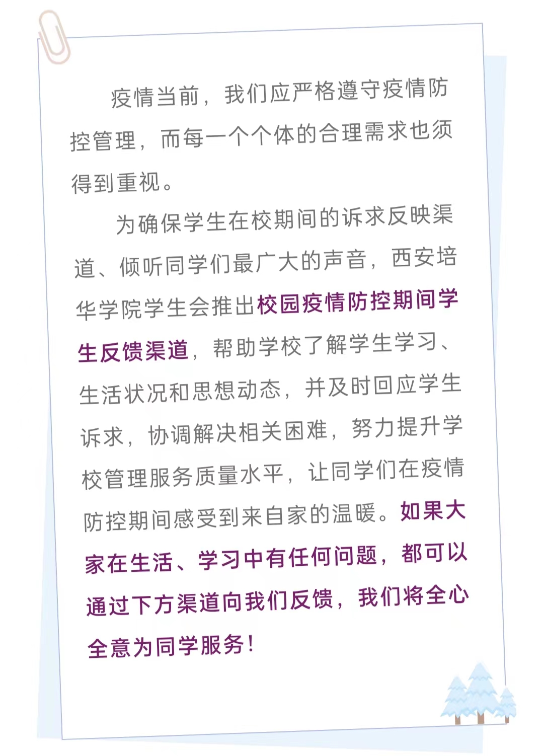 同心抗疫,我们在行动 | 西安培华学院校园疫情防控期间学生反馈渠道上线啦~