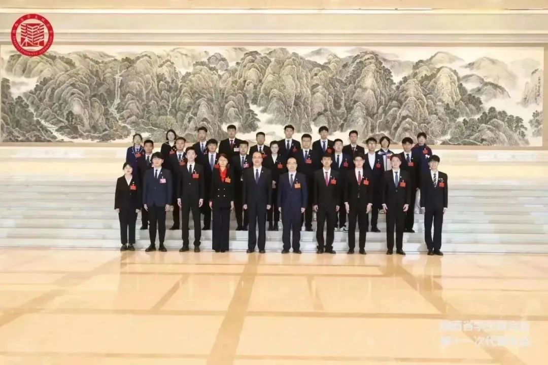 陕西学联十一届委员会一次会议结束后,团省委书记徐永胜、团省委副书记刘洋、团省委学校部部长郝鹏涛在陕西宾馆会议中心北大厅同新当选的陕西学联第十一届主席团成员团体代表合影留念。