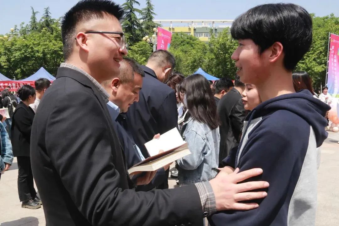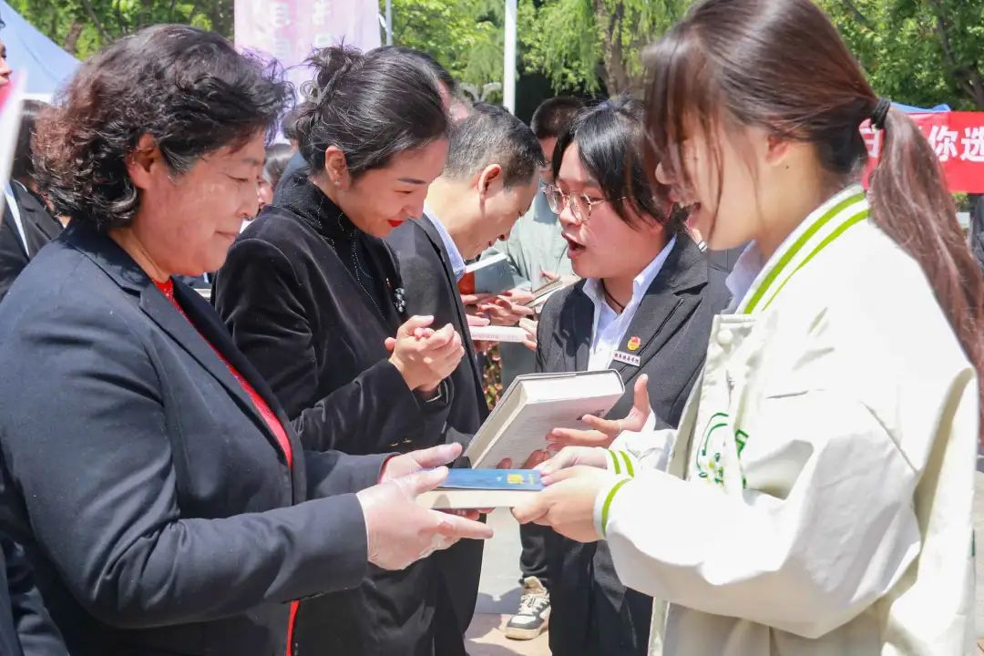 同学们为与会嘉宾赠书并开展“以书会友,师生共读”活动