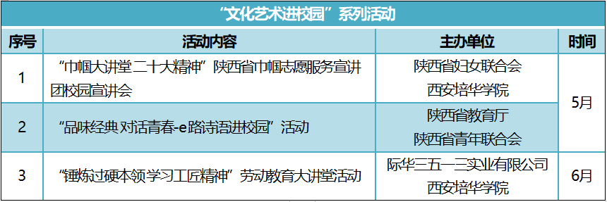 为深入学习贯彻党的二十大精神,落实立德树人根本任务, 构建“三全育人”“五育并举”新格局,切实增强青年学生时代责任感和历史使命感,充分发挥高校思政育人主阵地作用,积极营造健康向上、丰富多彩的校园文化,以积极良好的青春风貌献礼培华建校九十五周年。4月25日,学校在综合楼西广场举办西安培华学院第二十七届“校园之春”文化艺术节暨第28个“世界读书日”主题活动月启动仪式。