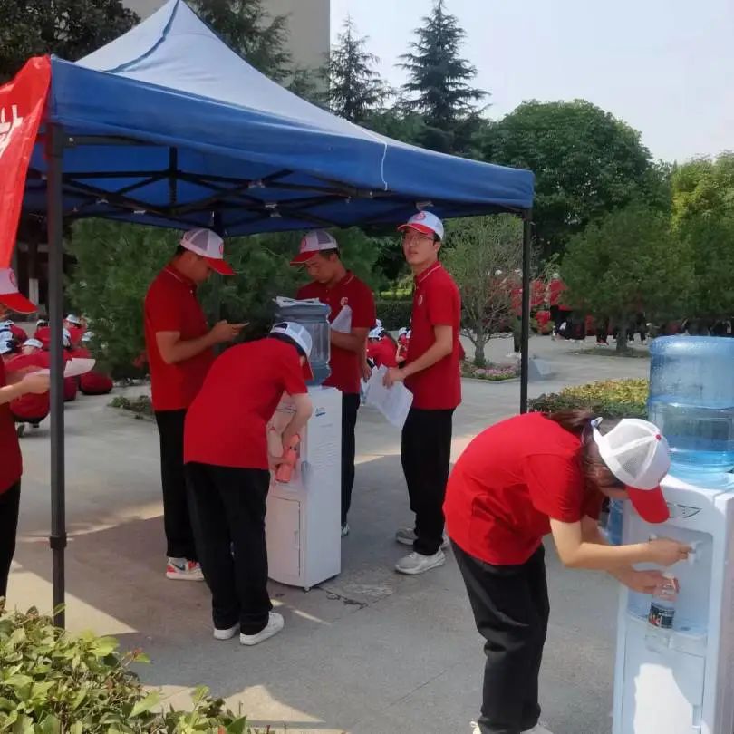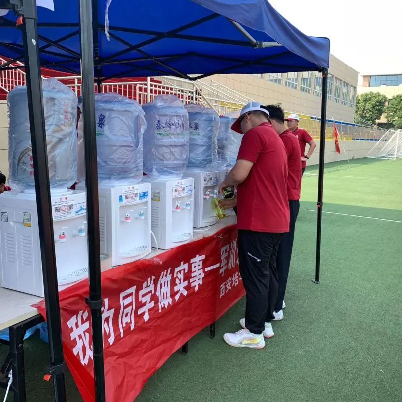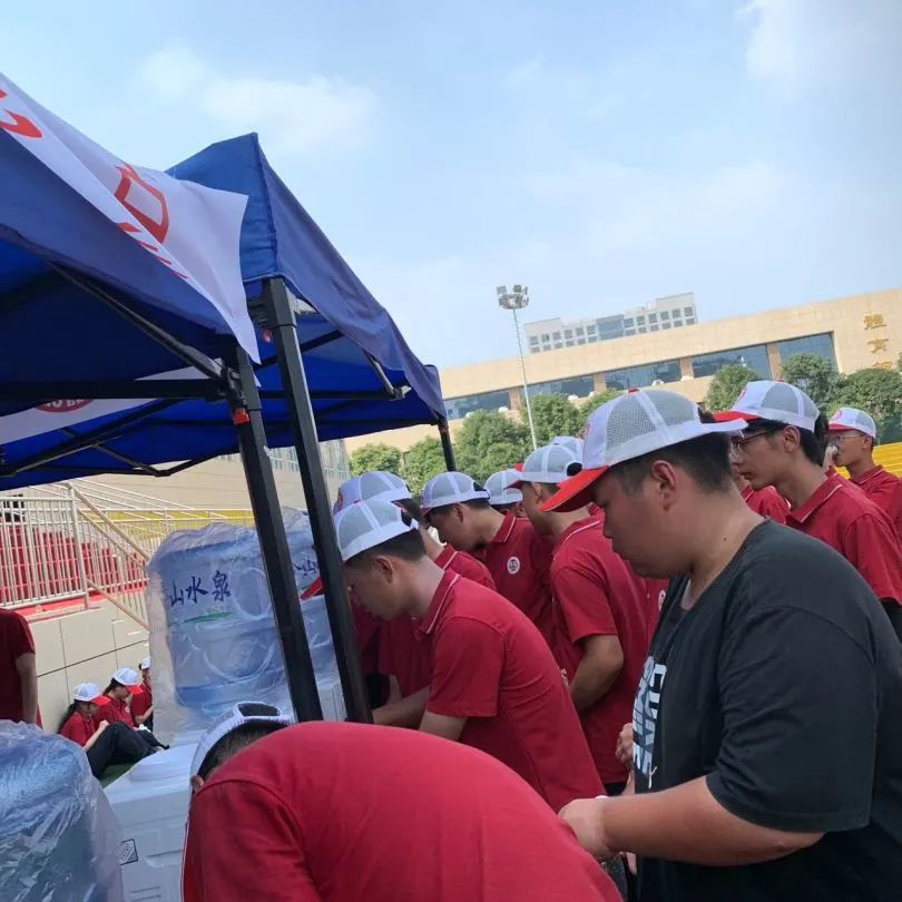 军训总是攀附着疲惫,严格的训练、烈日的烘烤,让指尖都流淌着汗水,看着晴朗到苦涩的天,校学生会在各个军训地点建立起爱心水站,在训练间隙,及时为同学们补充水分,提供关怀。同学们有序排队取水,志愿者们热情地为每一位前来接水的学生提供服务,成为培华校园中一道亮丽的风景线。愿这份“小清凉”能替你赶走站军姿的炎热,一切“水”到渠成!