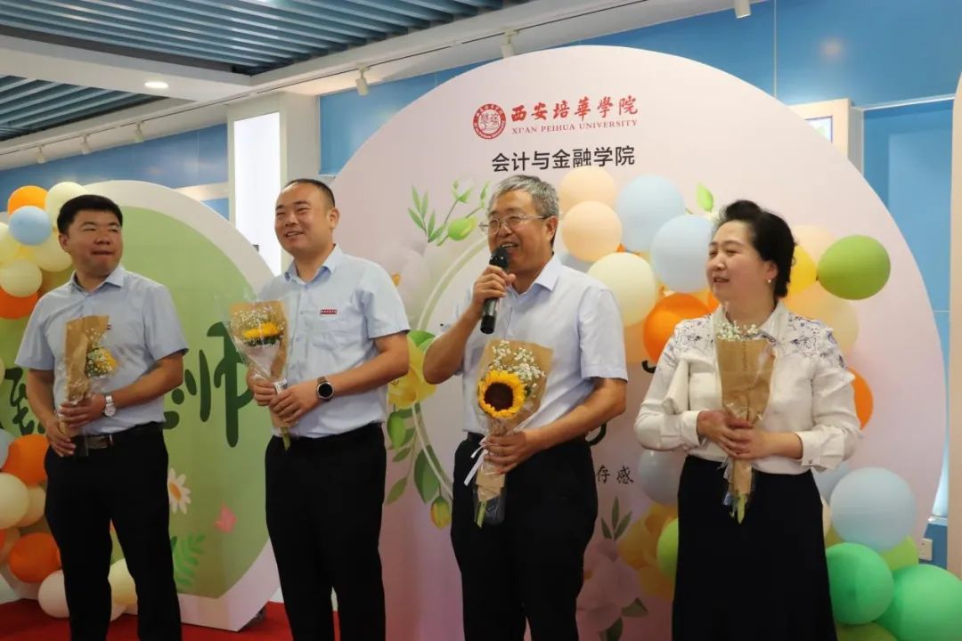 西安培华学院会计与金融学院党委书记刘斌致辞。刘斌书记表示,在这个特殊的日子里,谨代表学院向全体教师致以最崇高的敬意和最热烈的祝贺!感谢老师们在教育事业上的辛勤耕耘和无私奉献,老师们是学院的骄傲,是学生们的引路人!