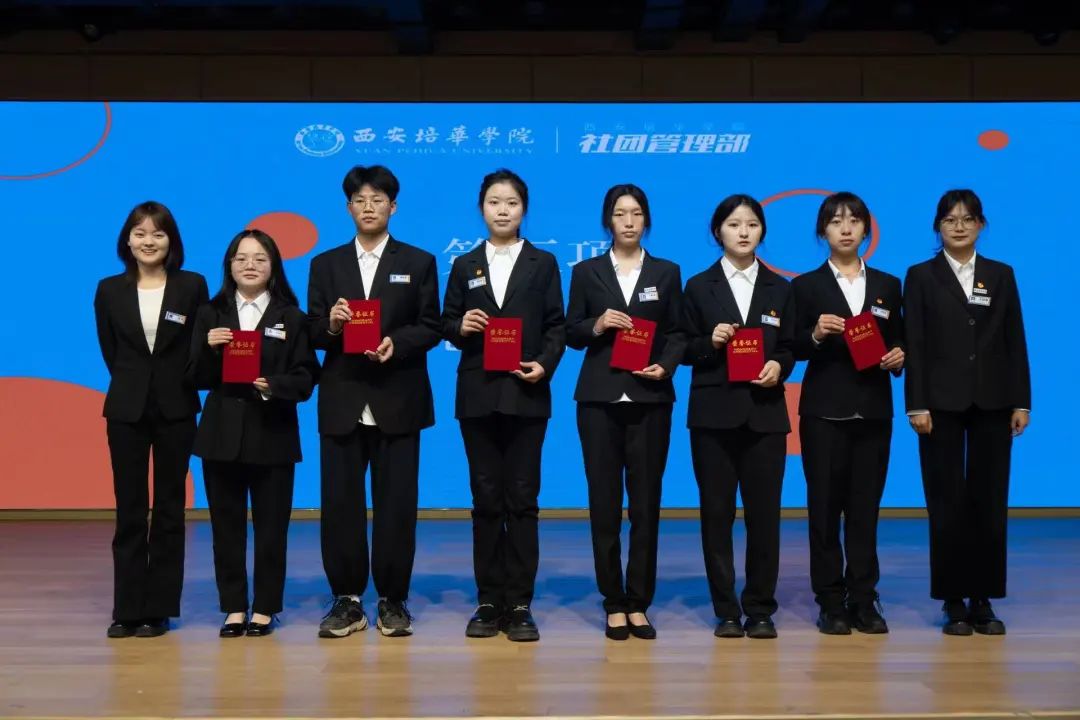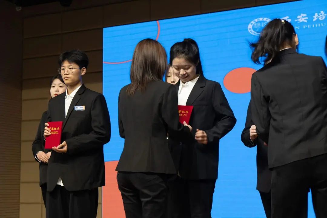 社团管理部副部长崔婧、张啸天为社团发展中心和活动运营中心优秀干部颁发证书