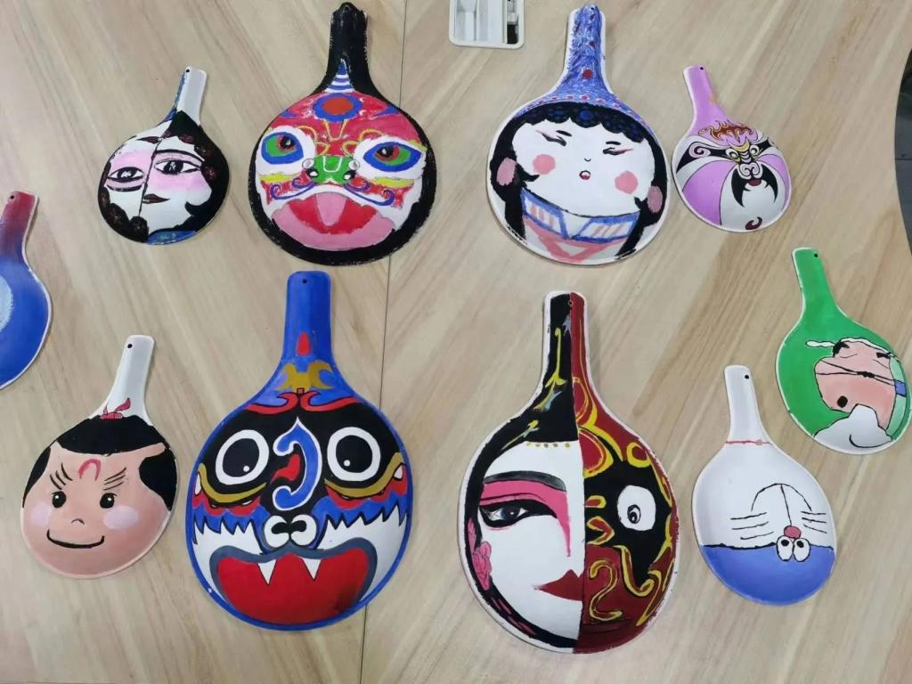 执笔画流年, 焚纸闻墨香 。传唱千年文化,弘扬千年绝学。传统文化的互相融合,马勺与绘画的完美结合。我们将脸谱绘制在马勺上,用绘画让传统文化更加生动有趣,我们用汗水浇灌青春,用时间谱写人生。传统文化的火炬将由我们继续传承,在未来的日子里依旧闪闪发光。