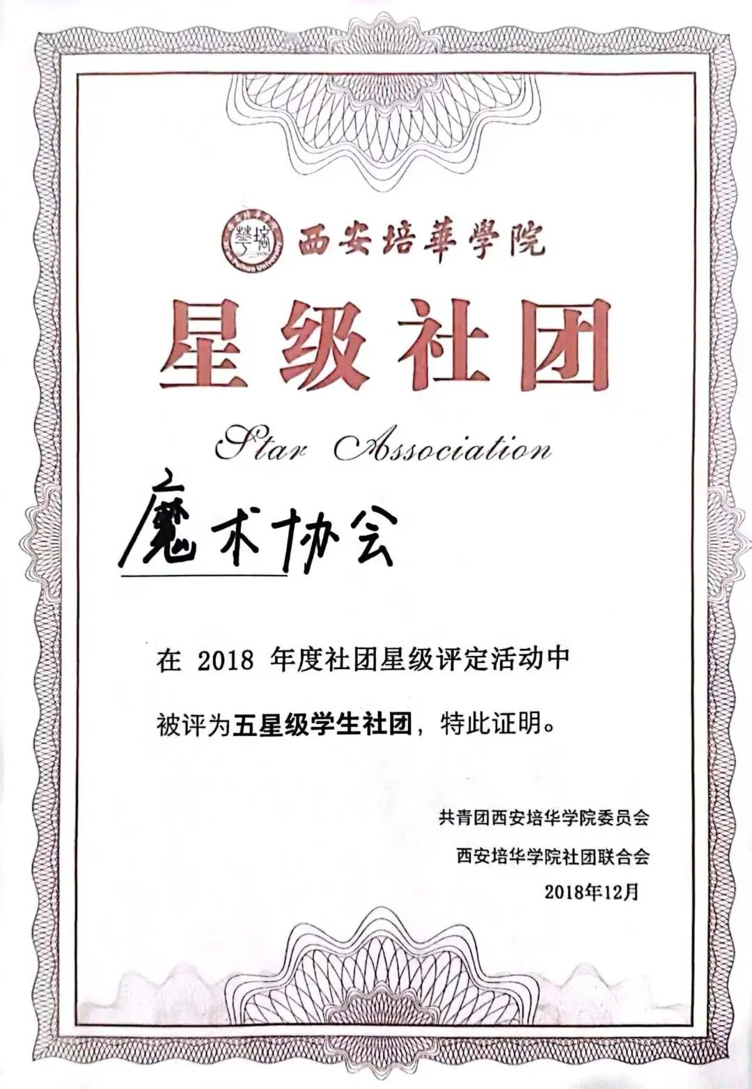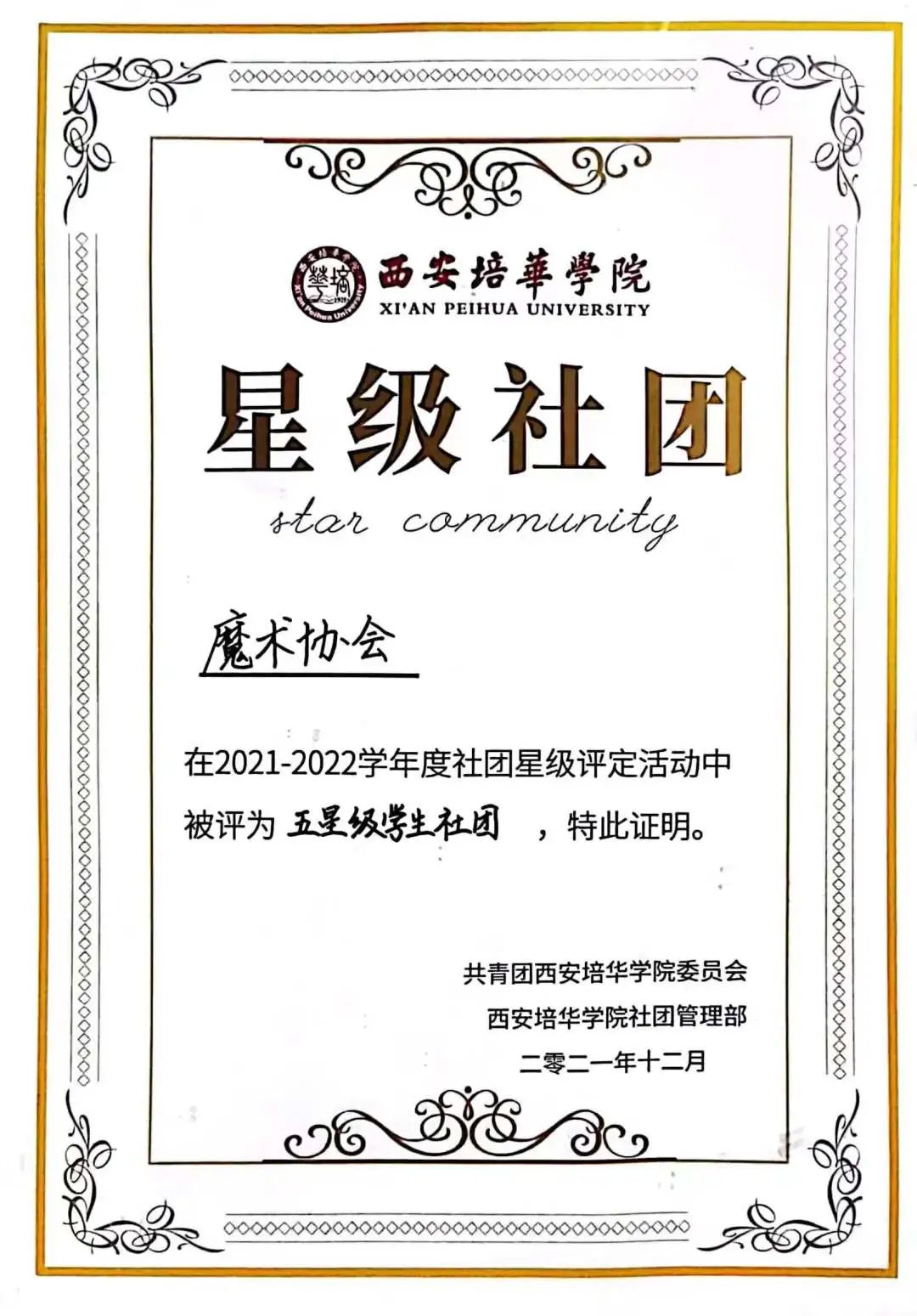 参与突破十万人。社团荣获国家部委奖项2项,省级奖项42个,多次被陕西省杂技艺术家协会评为“陕西省优秀高校魔术社团”。2021年被中国青年报评选为“2020全国百强社团”!