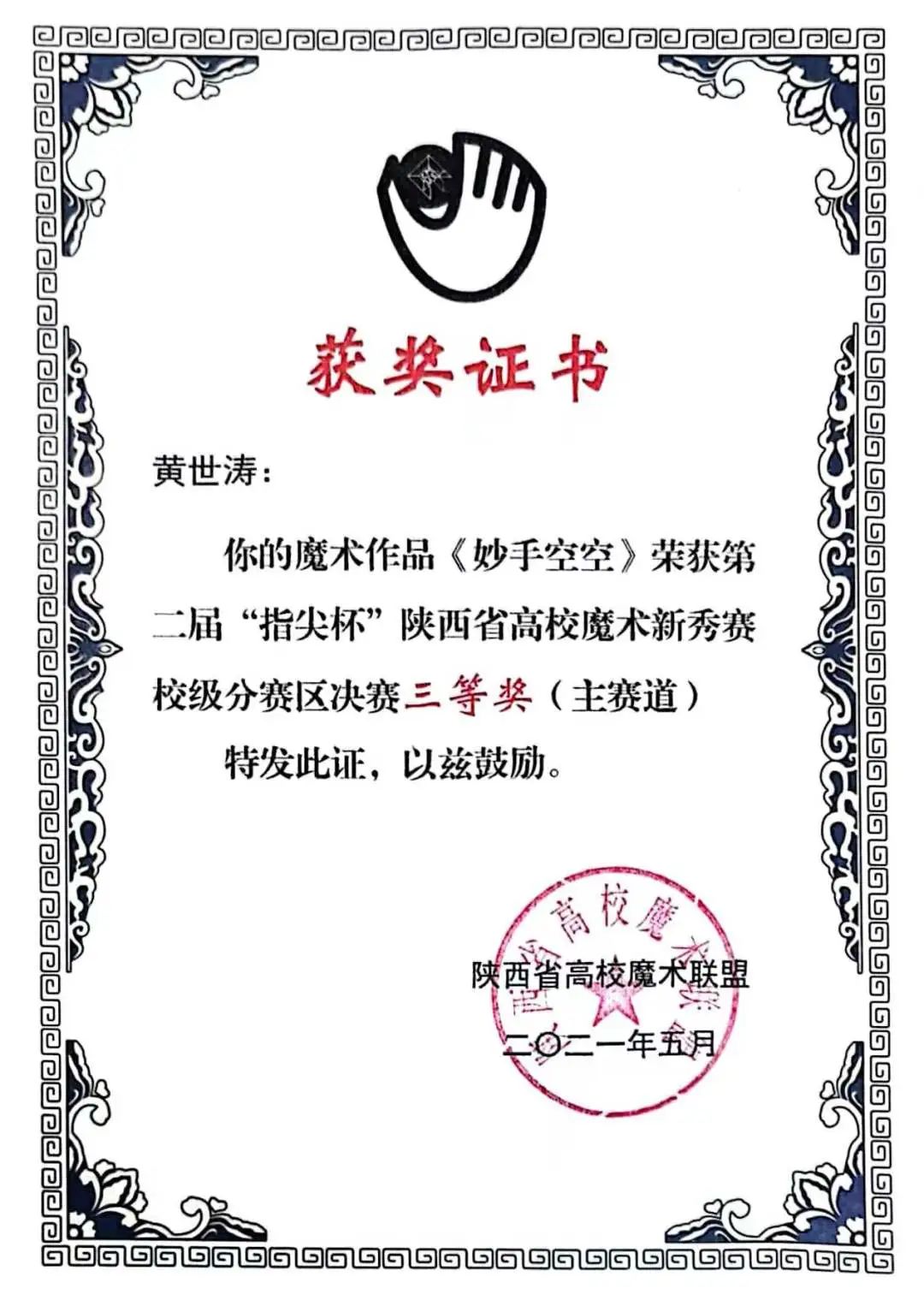 .第二届“指尖杯”陕西省高校魔术新秀赛校级分区赛决赛三等奖
