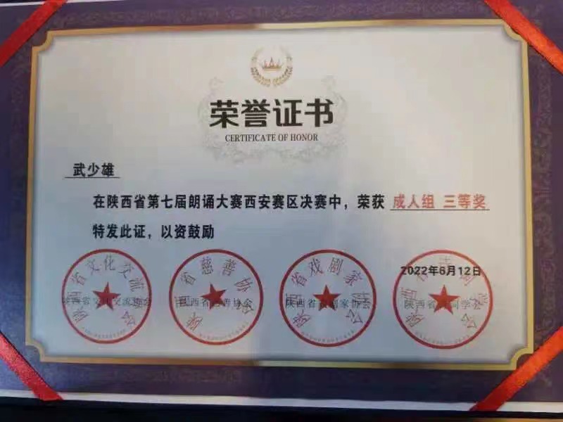 参与《梨园风华》、中国核工业集团中同股份有限公司宣传片、福建省厦门市城市防疫公益广告、西安培华学院校园防疫宣传片、华都村镇银行宣传片等配音作品录制