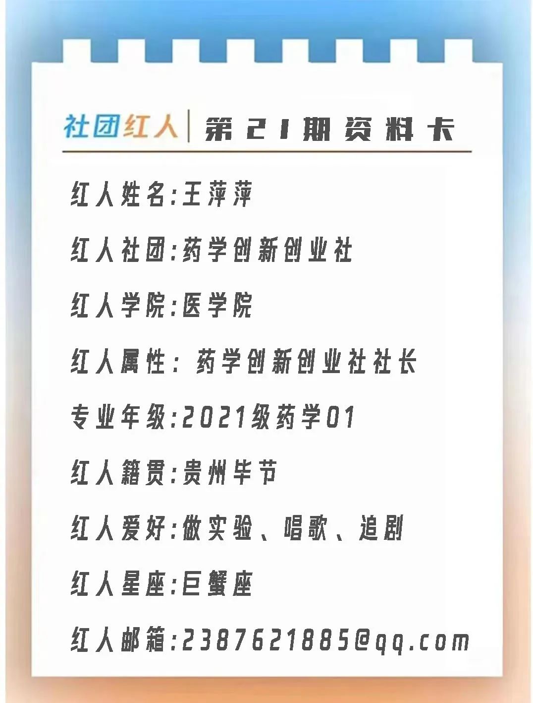A4:多多开展面对全校师生的活动,让每一位同学都能感受到创新的乐趣。积极带动药学系的同学加入创新比赛中,能够在大学生创新创业比赛、互联网+、挑战杯大赛获得荣誉。将社团做到有形有神。