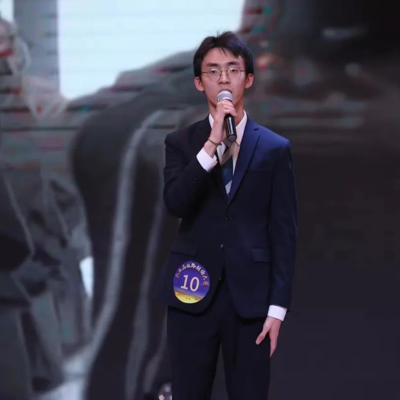 邢治豪,来自传媒学院,是华艺相声社的负责人。自幼热爱相声,自学快板儿艺术,喜欢中国传统艺术,从学校的舞台到登上珍友社,担任主持人、快板儿演员、相声演员、珍友社抖音视频剪辑等工作。在校期间,举办过两届相声大会,无偿培养相声社团的成员学习快板相声。