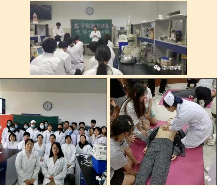 药学创新创业社是一个致力于培养药学专业学生创新精神和创业能力的组织,社团于2016年创立,且多次获得活力社团的称号,于2020年获得了西安培华学院优秀大学生创业实践团队的荣誉称号,并且开展创新创业主题讲座,中医理疗拓展活动,制作手工香皂、口红、洗手液和护肤品,学习心肺复苏技能,基础仪器讲解等活动,提升个人综合能力,另外在这个学期我们与团委合作进行奖品输送。