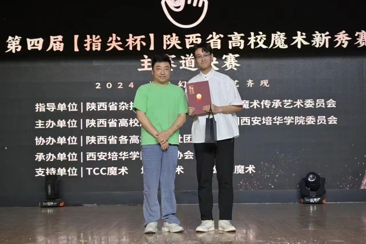 为紧密配合陕西省杂技艺术家协会年度工作安排,发挥新文艺组织人才培养的积极作用,增强社团交流,提高大学生魔术爱好者创意实践能力。2024年5月25日,由陕西省杂技艺术家协会、周化一魔术传承艺术委员会指导,陕西省高校魔术联盟、共青团西安培华学院委员会主办,西安培华学院学生会协办,西安培华学院魔术协会承办的第四届“指尖杯”陕西省高校魔术新秀赛总决赛在西安培华学院大学生活动中心成功举办。