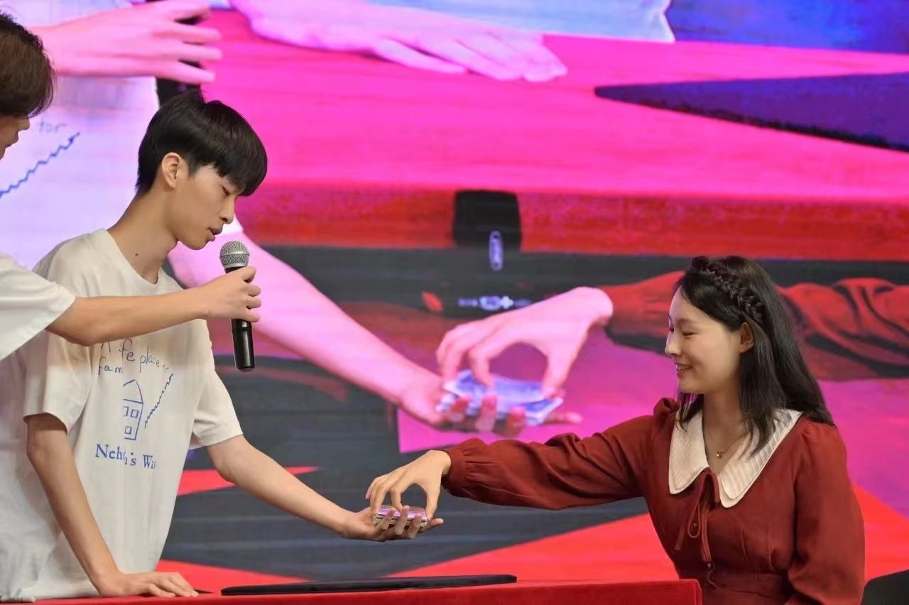 陕西省民间艺术剧院国家三级演员、陕西省高校魔术联盟指导老师郭文静;2019年甘肃省大学生魔术大赛冠军、全国高校魔术联盟展演嘉宾王维才;山东省杂技艺术家协会会员李明哲 ——为优秀奖获奖者颁奖